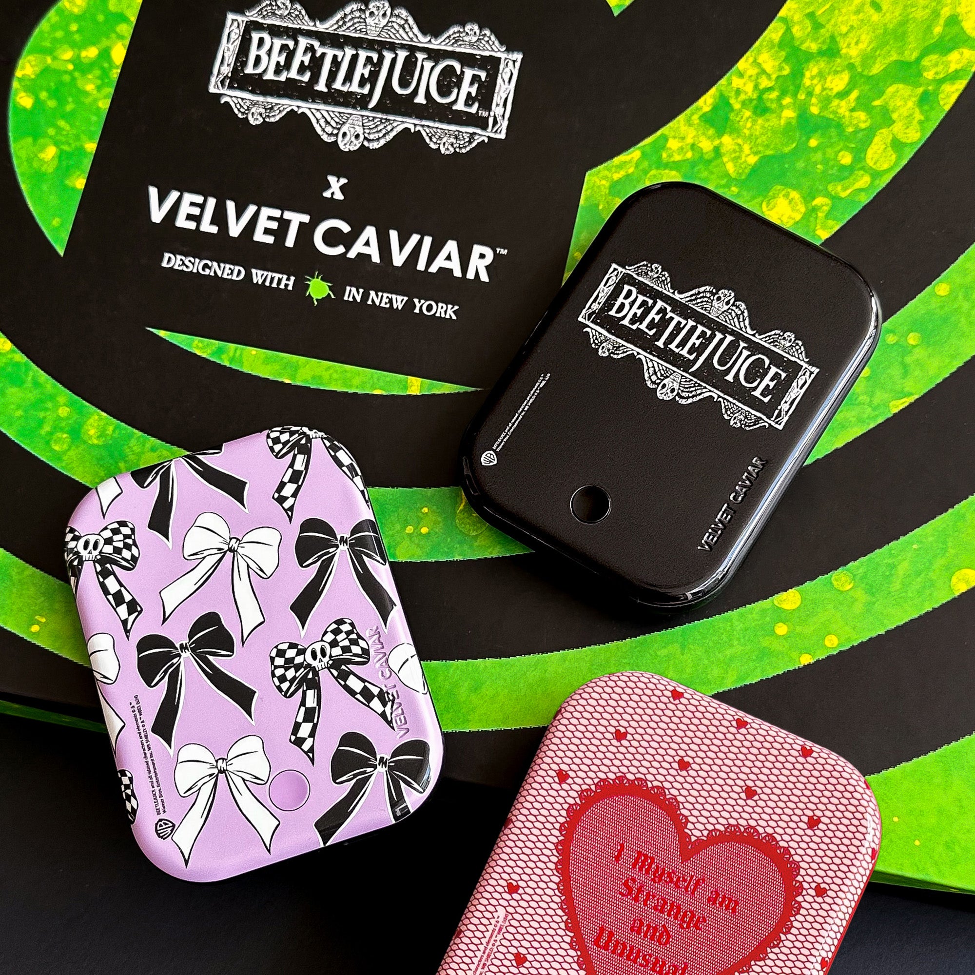 Beetlejuice x Velvet Caviar: This Limited Edition series of haunting phone cases is absolutely to-die-for! Leave heads spinning with these stunning designs inspired by the iconic film and it's unforgettable characters. We hope this spook-tacular PR Bundle inspires you to embrace your inner ghoul.