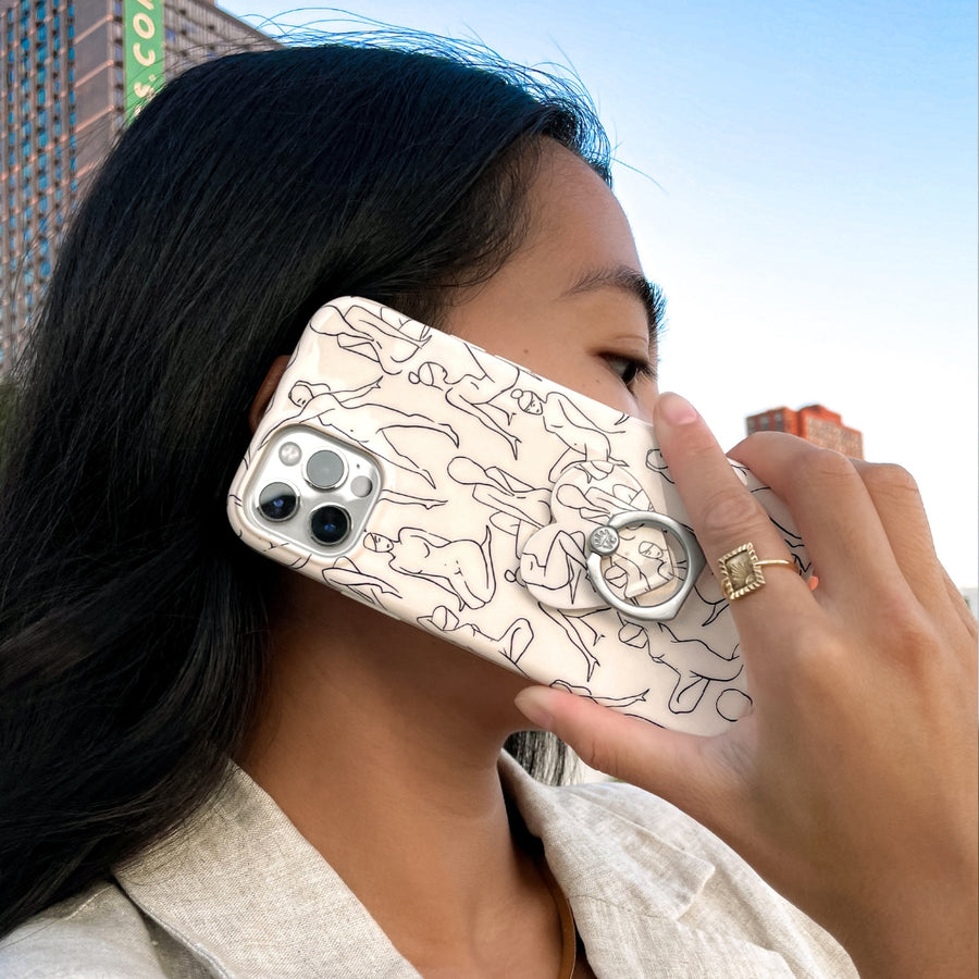 Project positivity! This protective case features a cream base with stunning line drawings of the female figure.