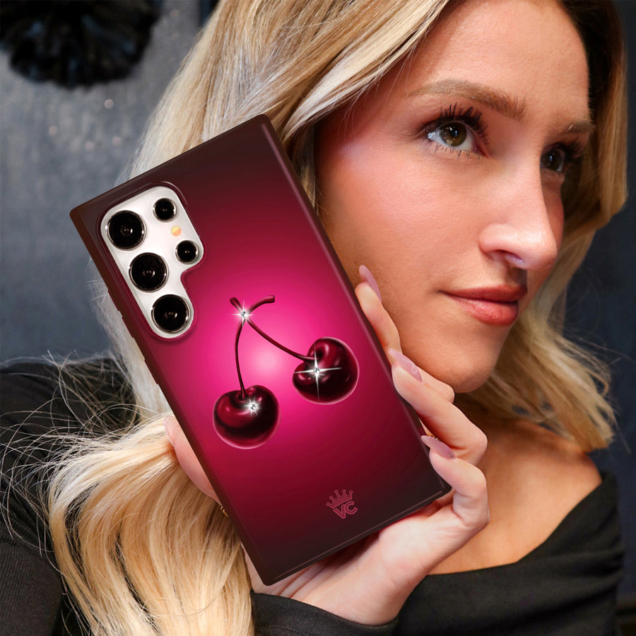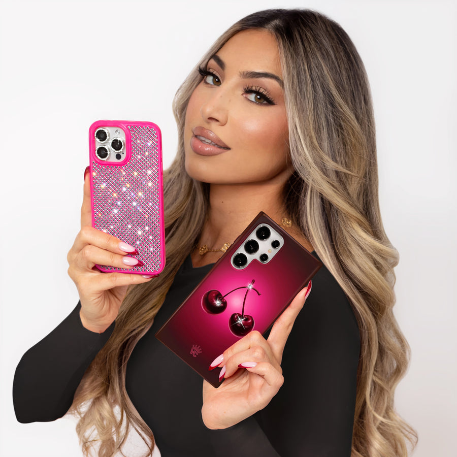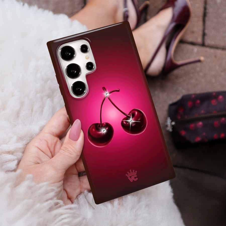 Holiday Exclusive! This protective Black Cherry Case features 3 inlaid sparkling glass crystals on a stunning gradient burgundy base.
