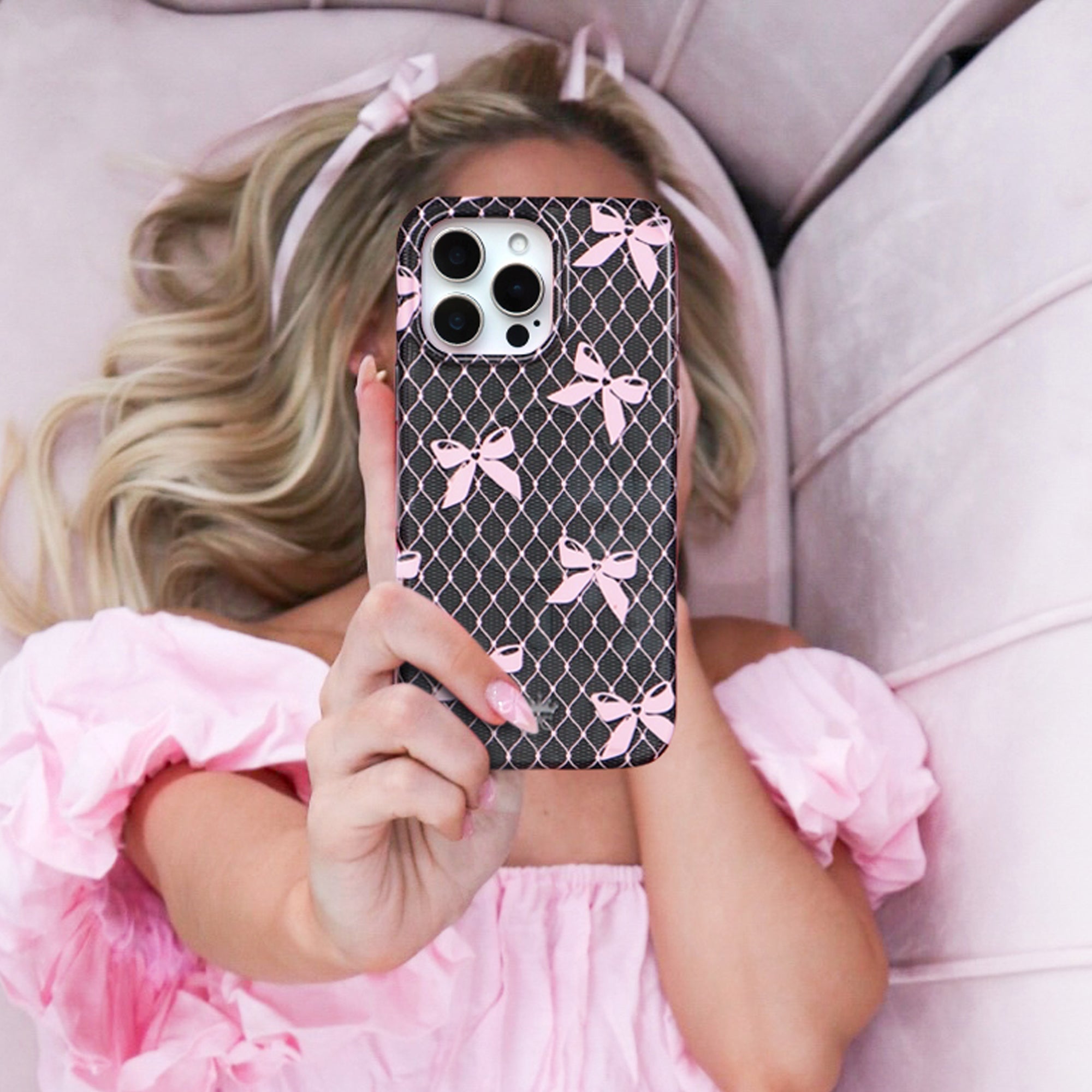 Lacy Pink Bows iPhone Case