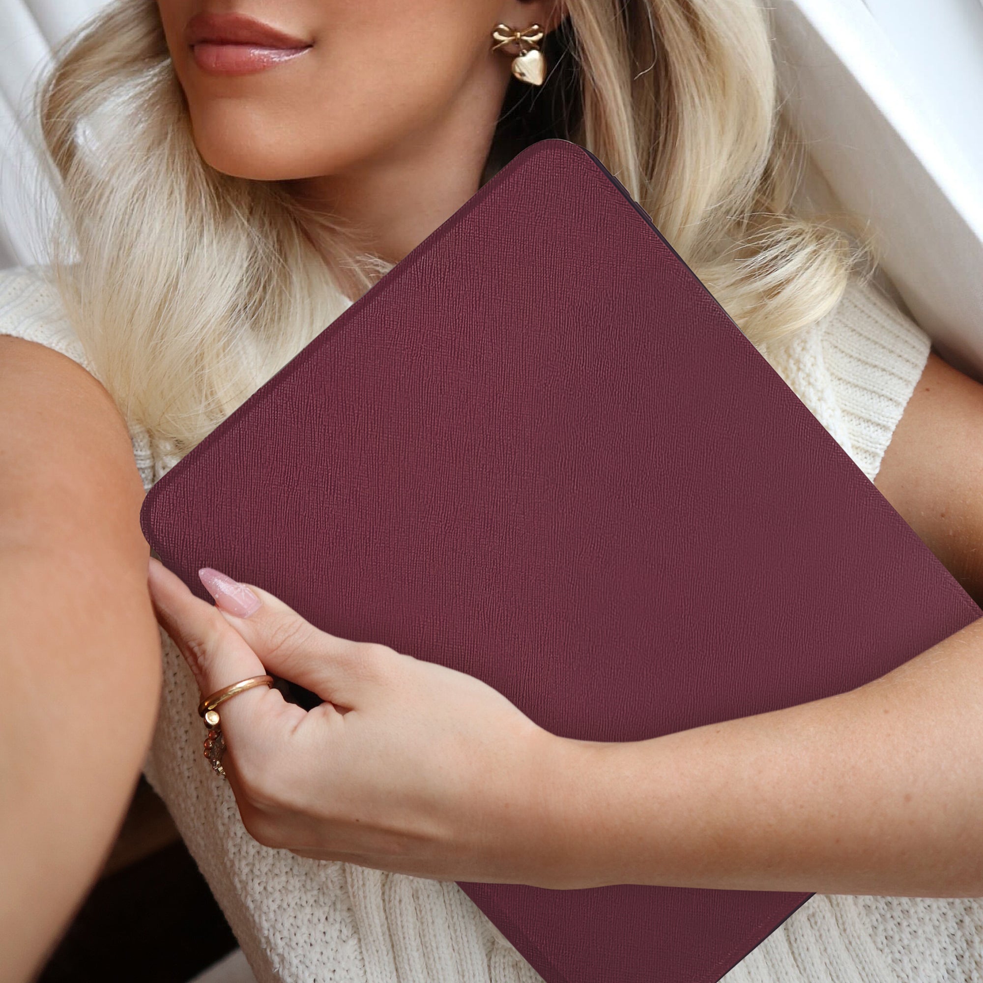 Elevate your everyday with this folio style iPad case featuring a Vegan Saffiano Leather exterior, 3 adjustable stand settings, and a charging compatible stylus holder*.