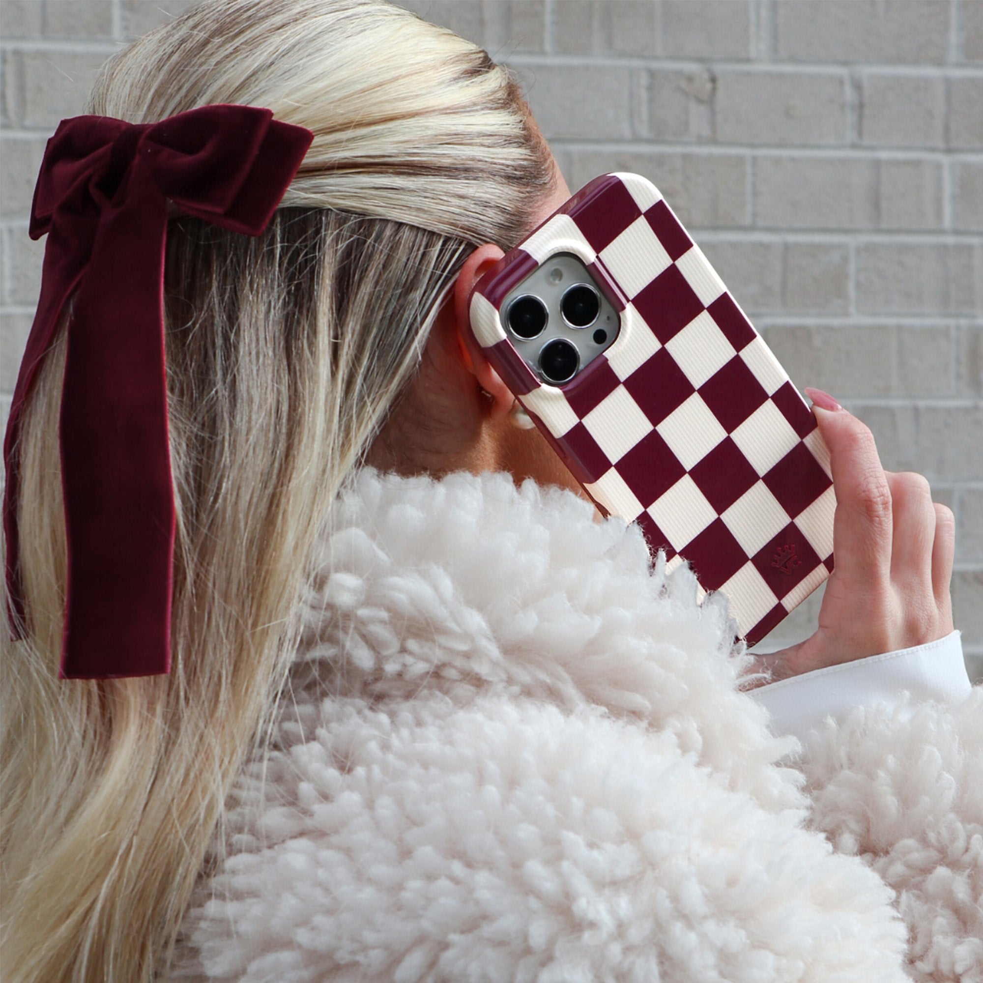 Check Please! This stunning burgundy and cream case is a total vibe with vintage inspired lines throughout the cream checks.