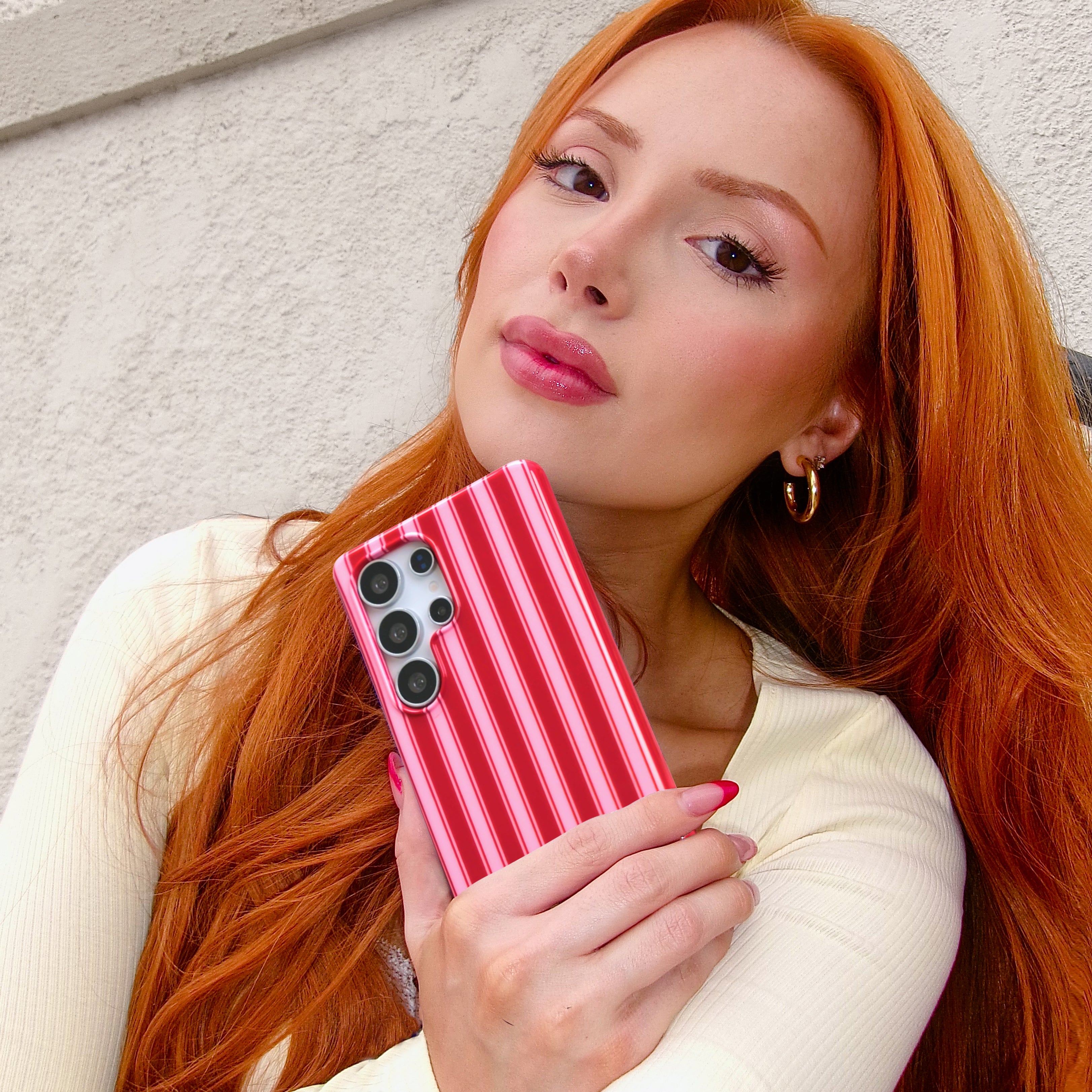 Sweet like candy! This protective case features glossy pink and red stripes throughout.