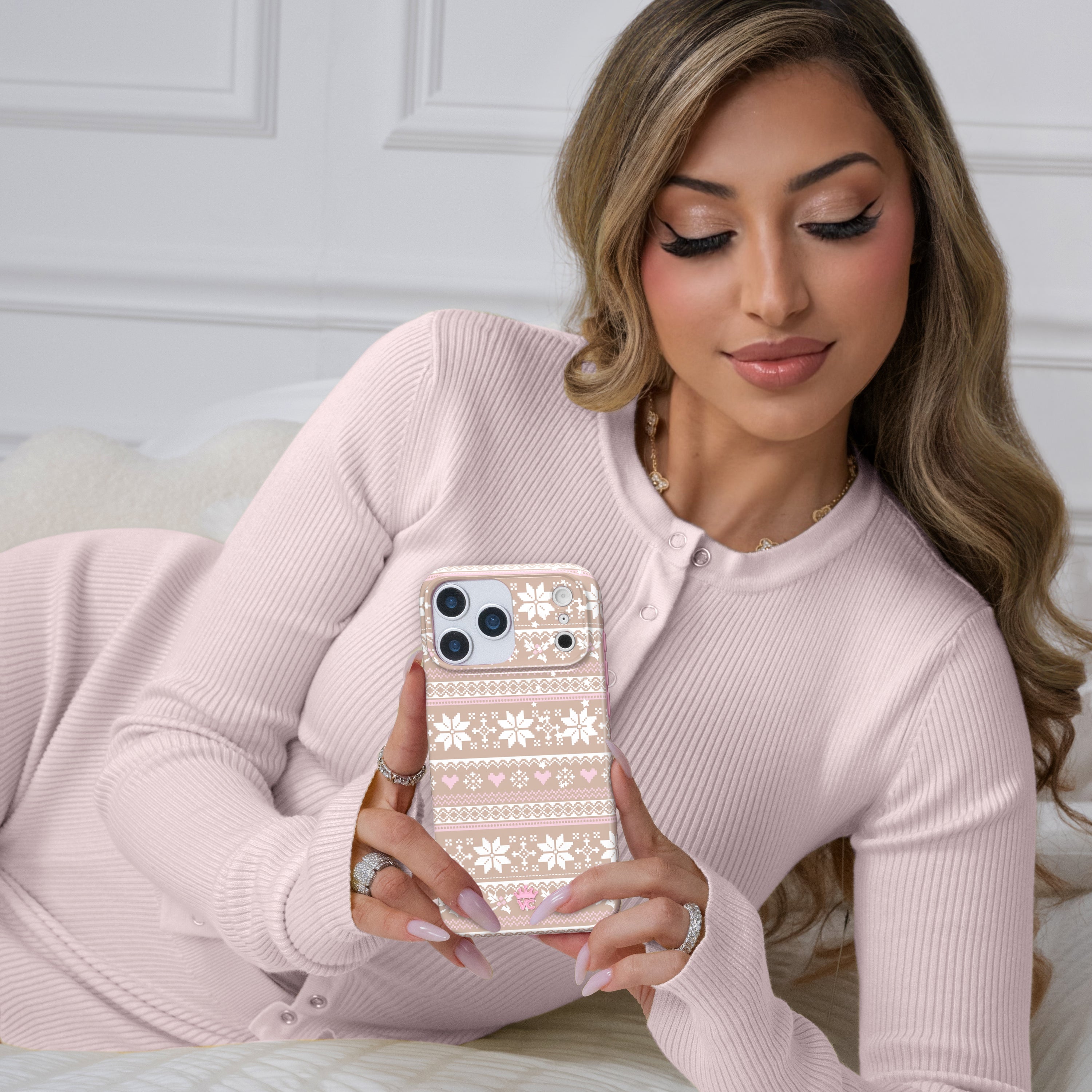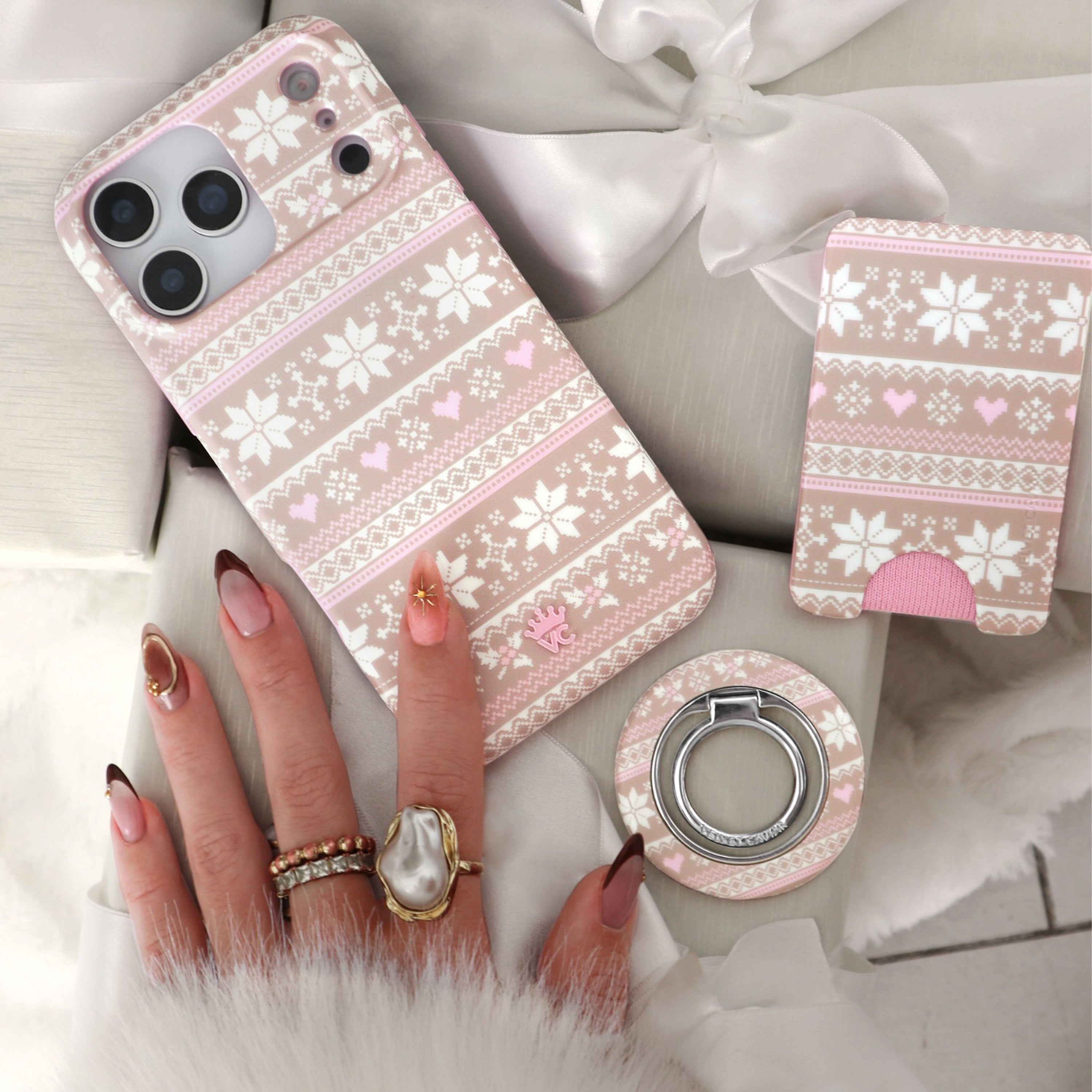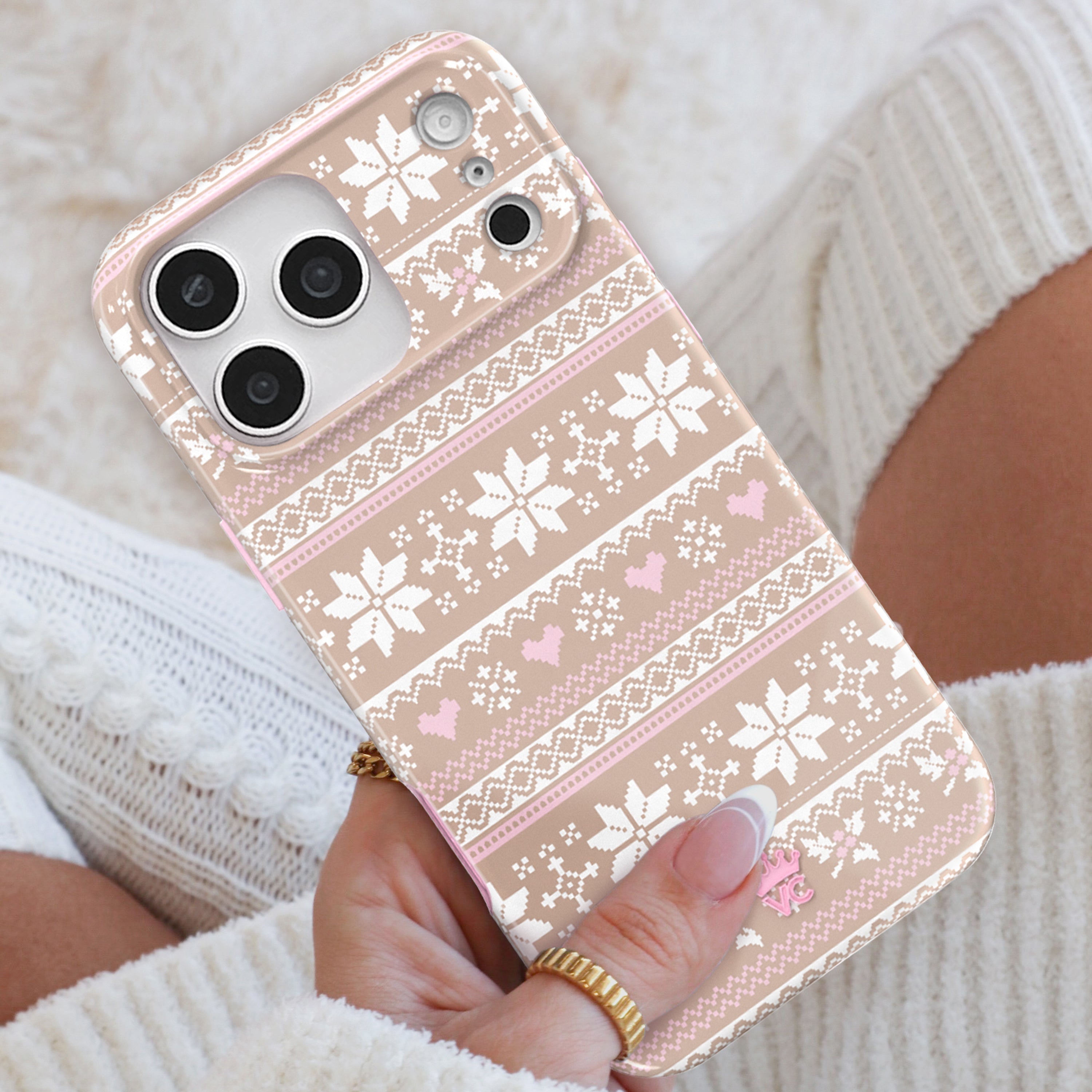 Happy Holidays! This MagSafe case features features an adorable vintage inspired sweater pattern in taupe, baby pink and white tones. This case is part of our Limited Edition Holiday Dreams collection celebrating Christmas and Hanukkah.