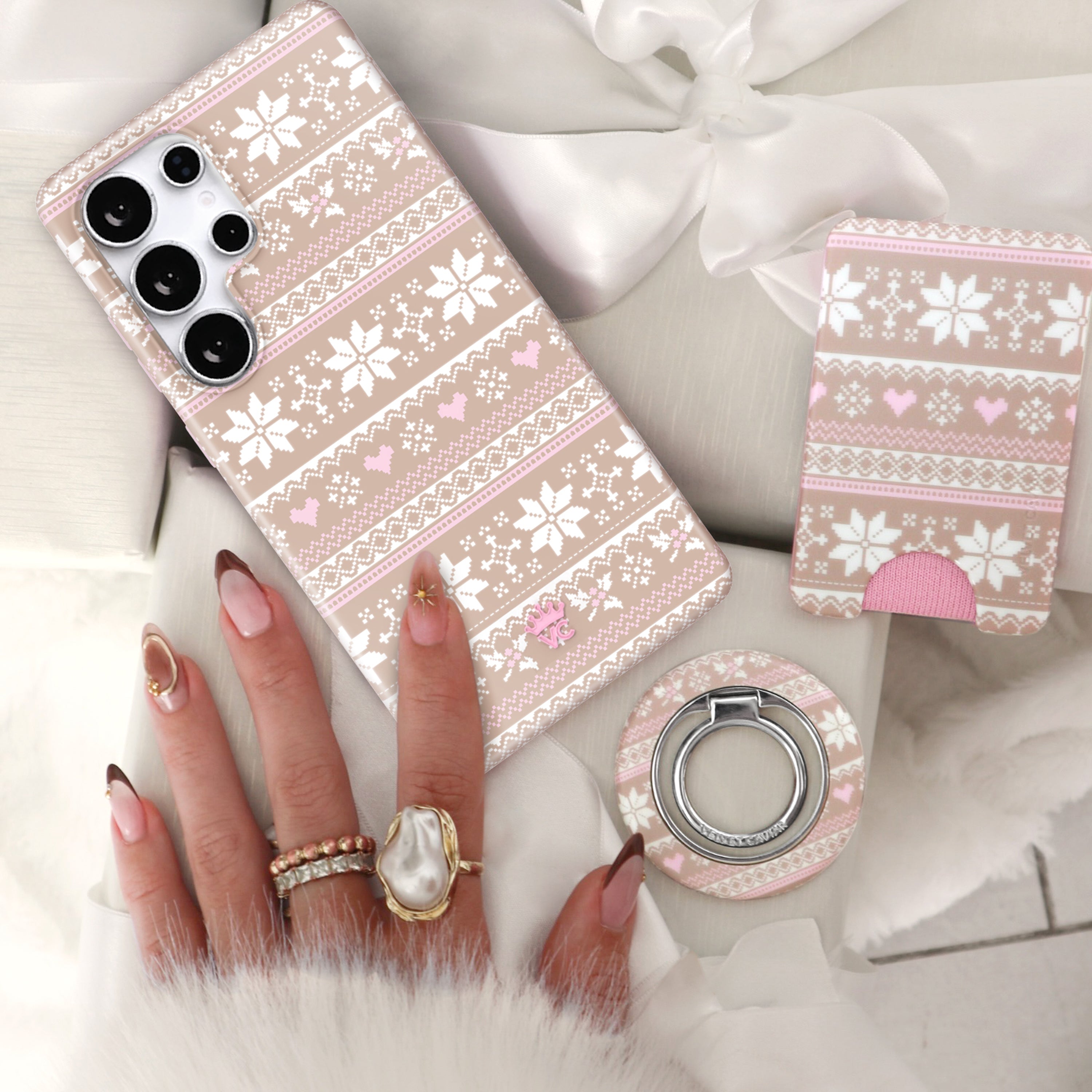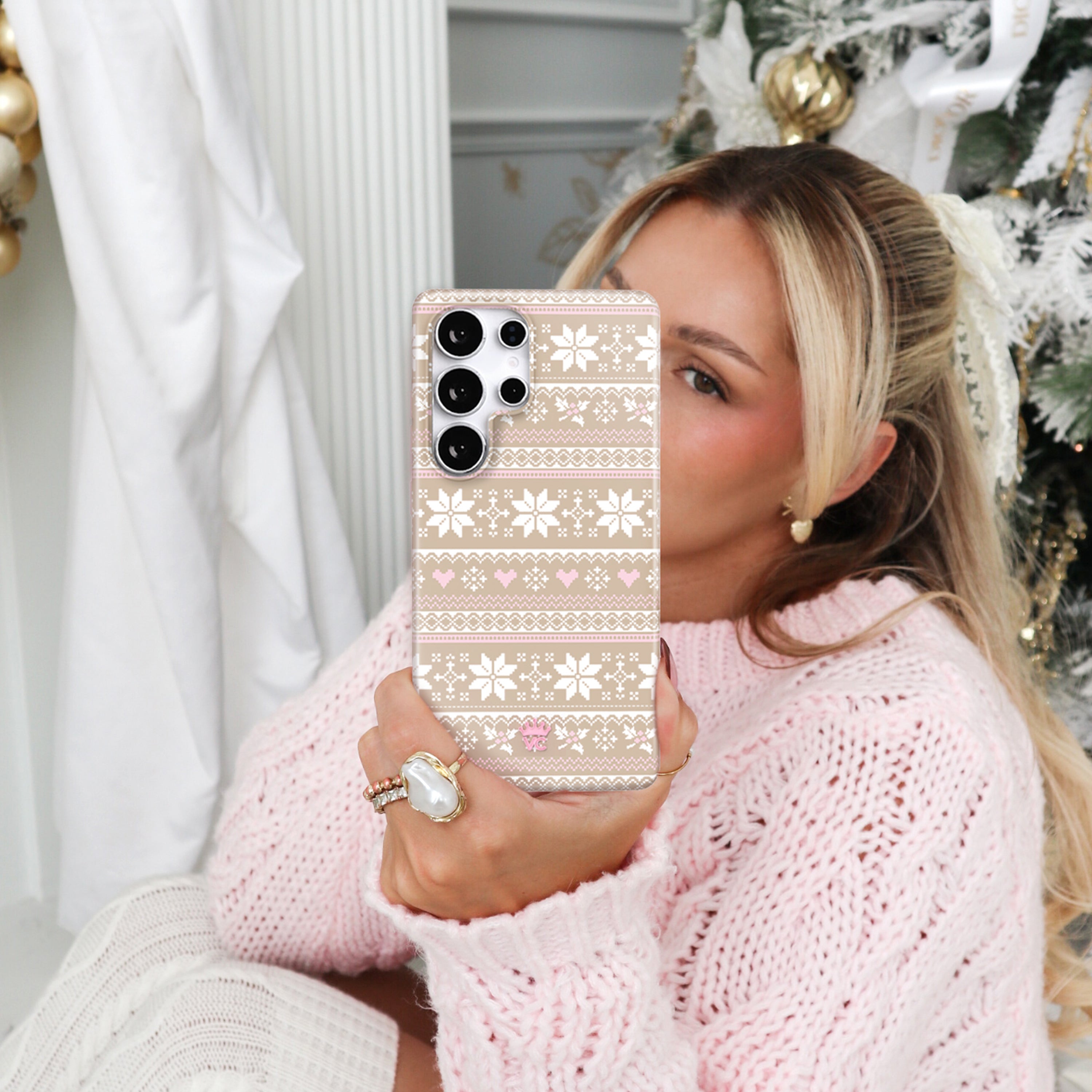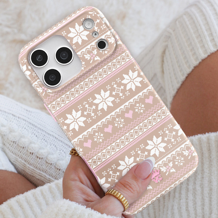 Happy Holidays! This protective case features features an adorable vintage inspired sweater pattern in taupe, baby pink and white tones. This case is part of our Limited Edition Holiday Dreams collection celebrating Christmas and Hanukkah.