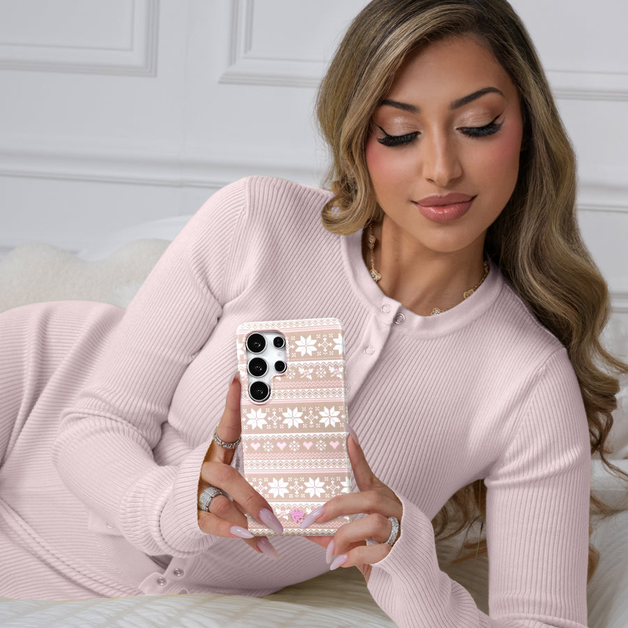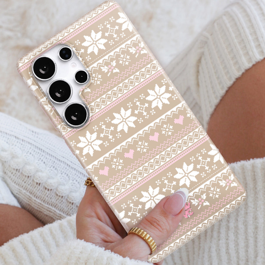 Happy Holidays! This protective case features features an adorable vintage inspired sweater pattern in taupe, baby pink and white tones. This case is part of our Limited Edition Holiday Dreams collection celebrating Christmas and Hanukkah.