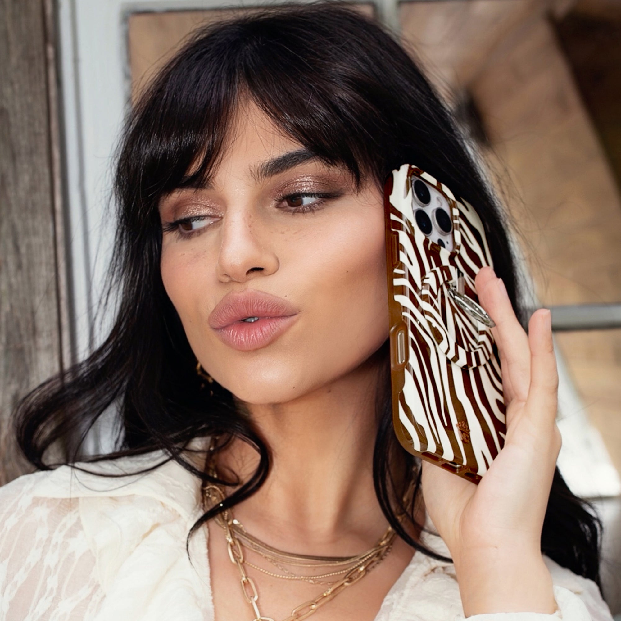 Never change your stripes! This ultra chic MagSafe case features a rich brown and off white glossy zebra pattern with a matching rich brown bumper