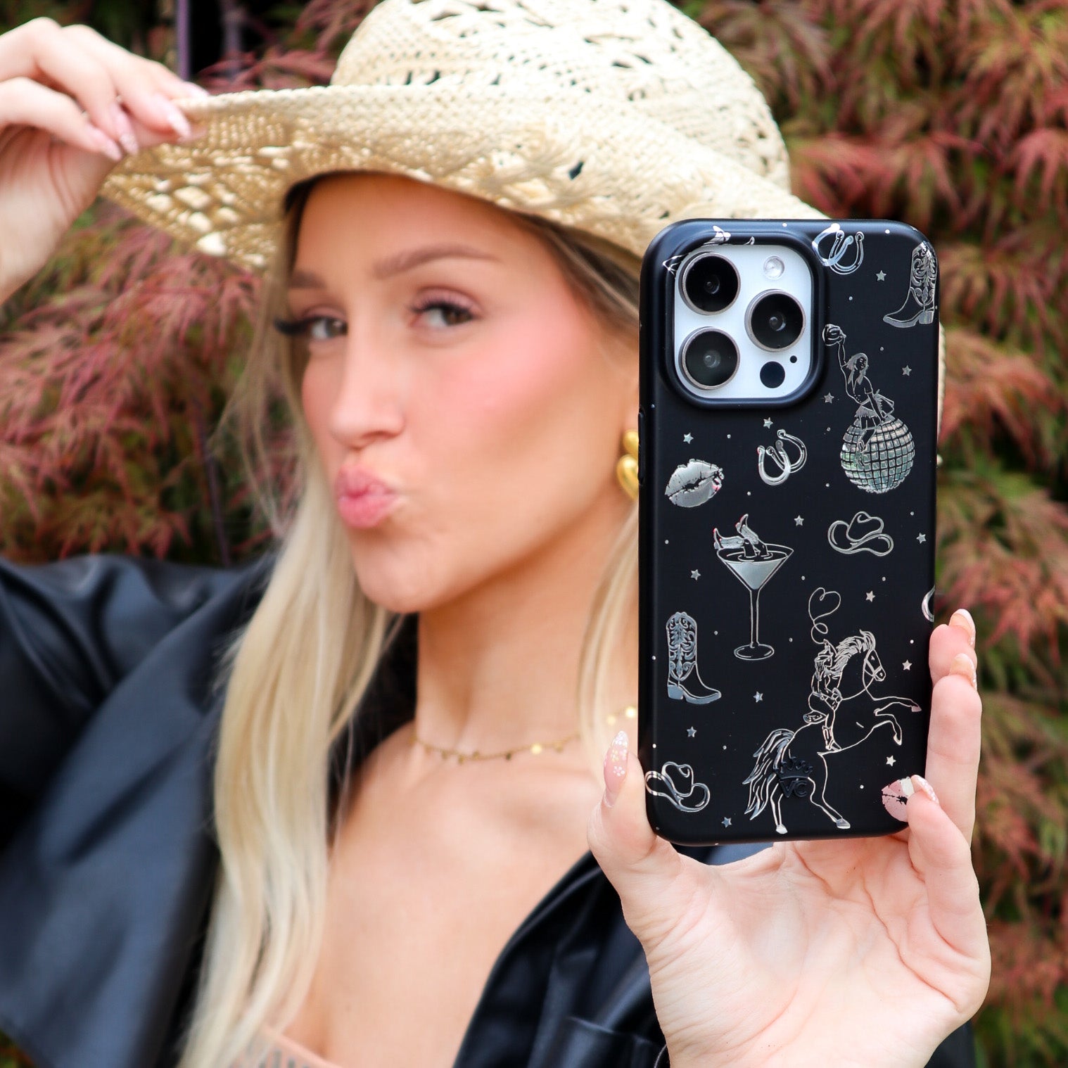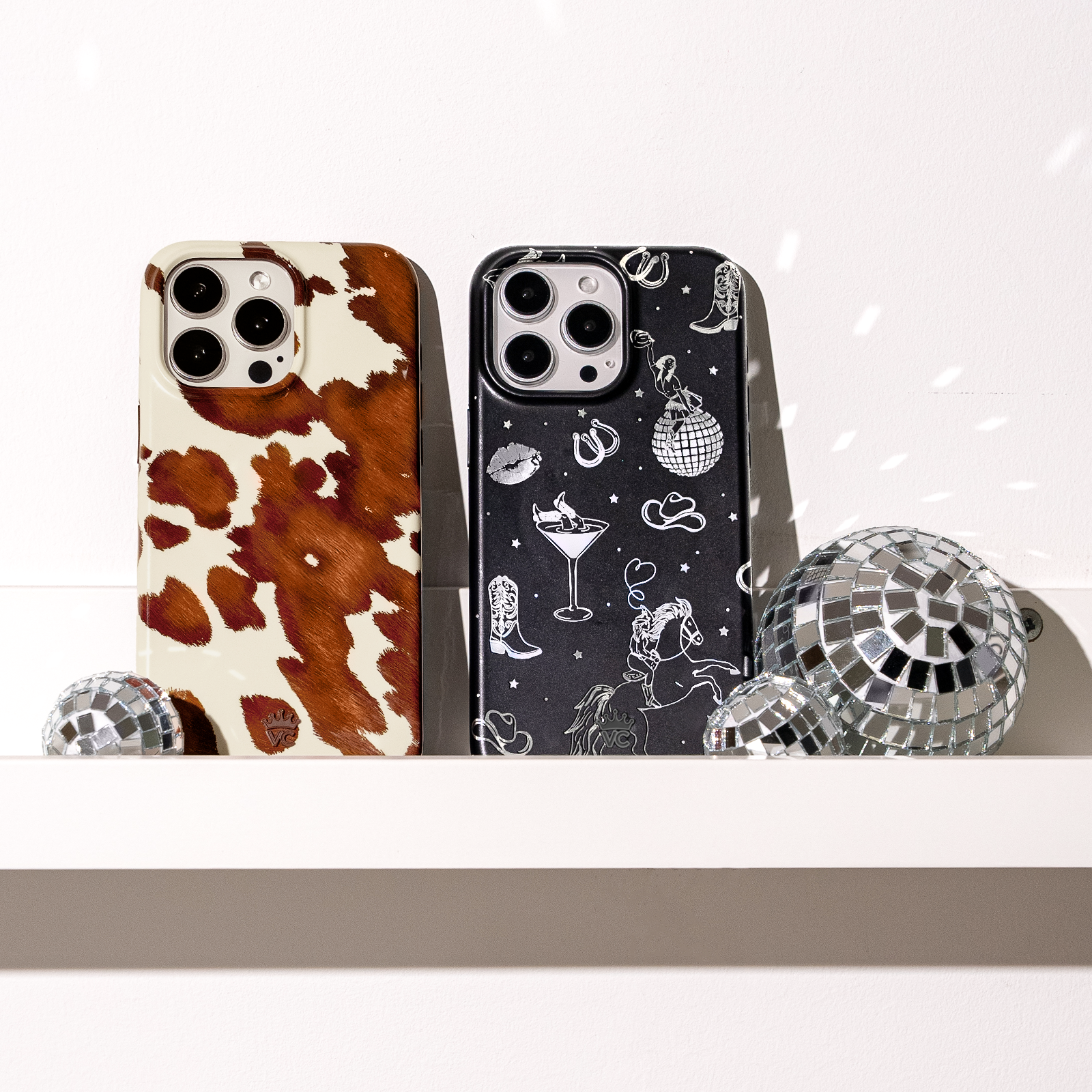 Queen of the night! This Limited Edition Case features a chrome cowboy hat, disco ball, boots, and martini glass all on a matte black base.
