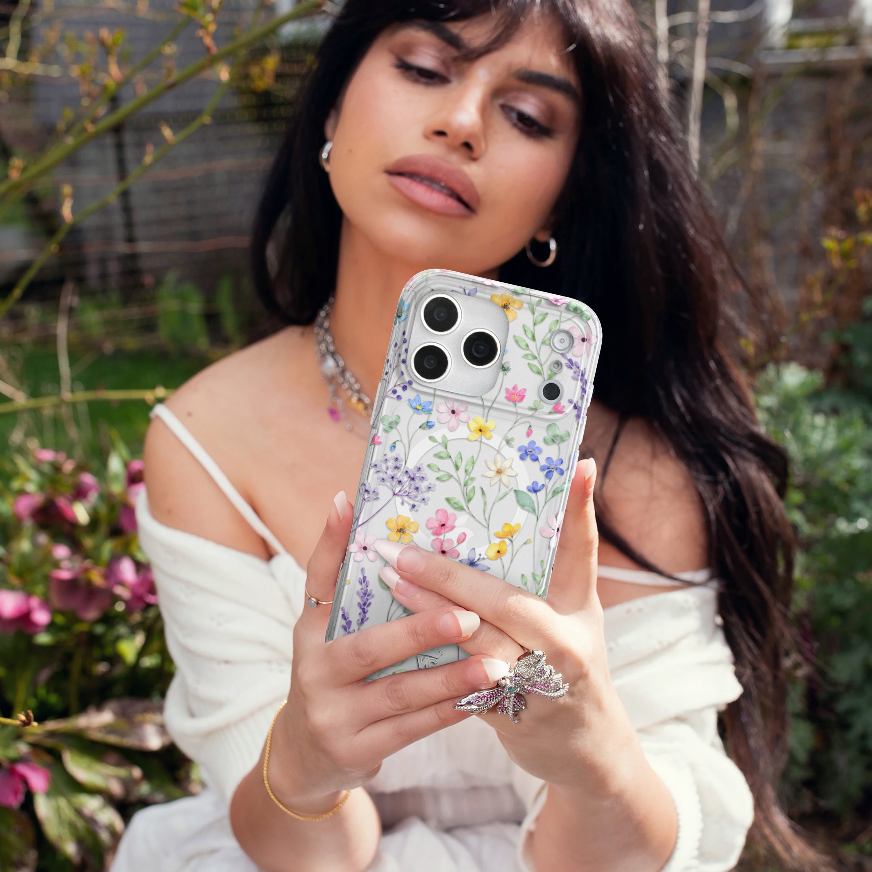 Enchanted in bloom! This timeless MagSafe case features pretty pastel wildflowers on a clear case.