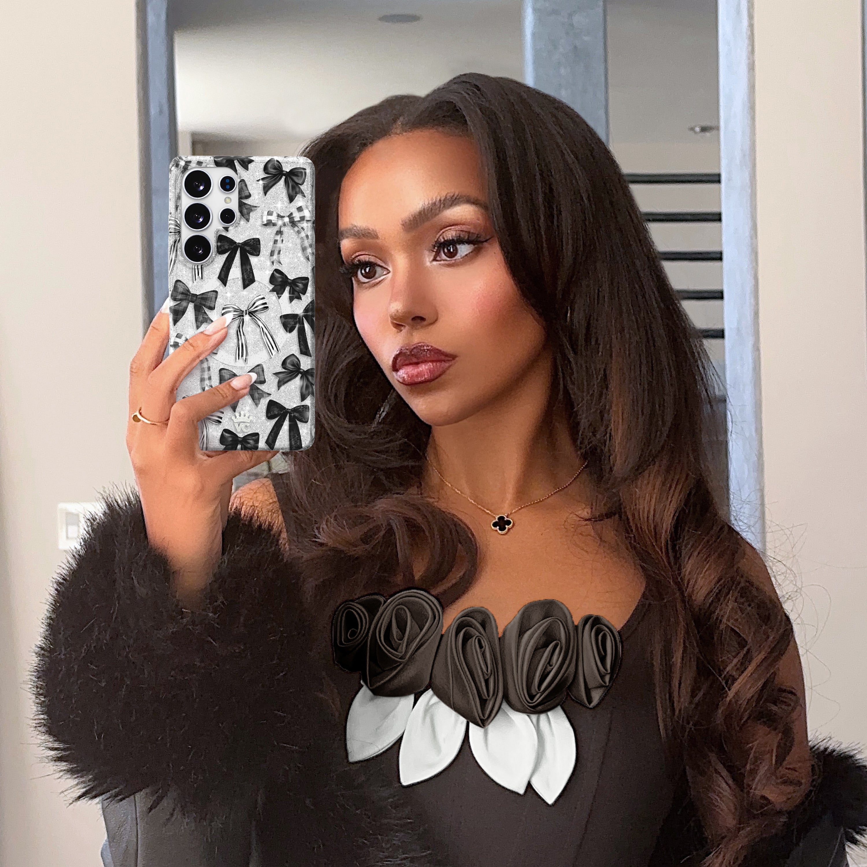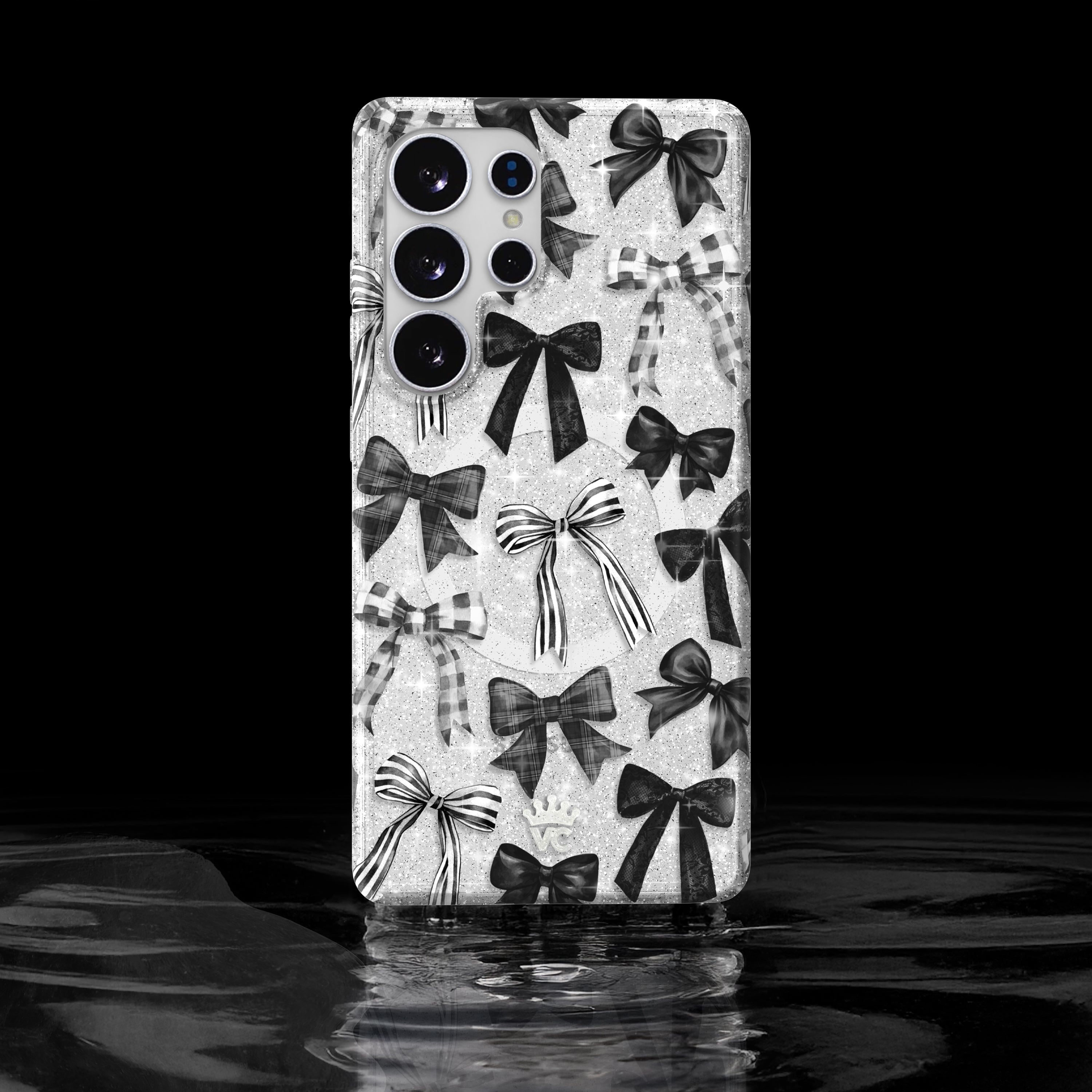 Happy Halloween! This spooky protective clear case features gothic ribbon bows in black, stripe, and gingham patterns.