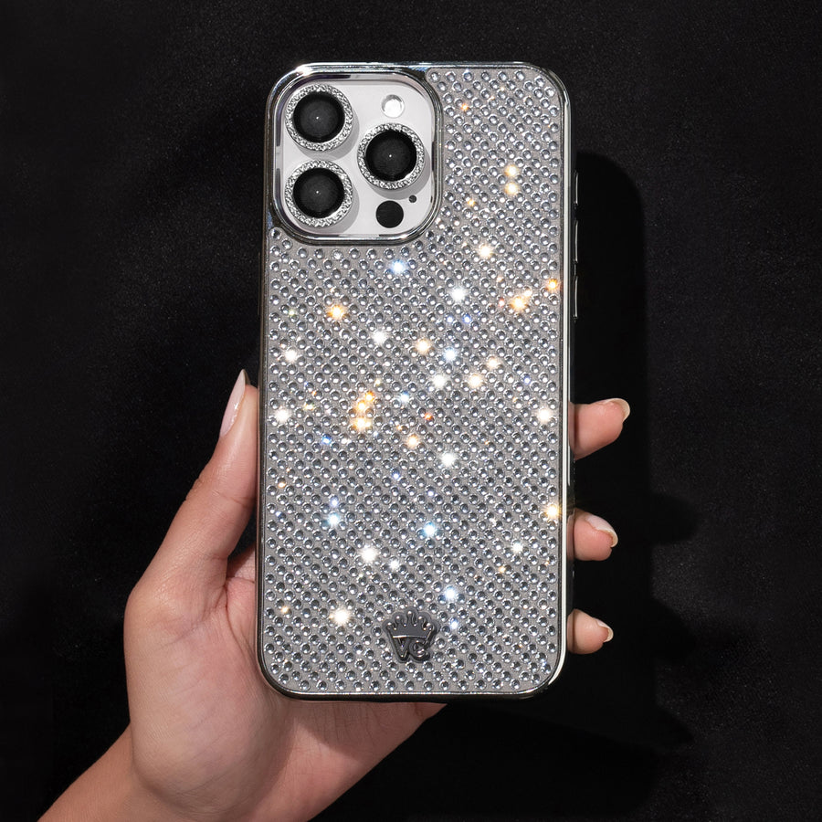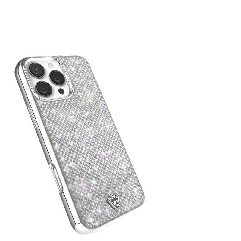 The most dazzling crystal case ever made! Covered in 600+ hand-placed glass crystals that sparkle like no other. Protected in an 8' drop tested electroplated chrome case. This case is not compatible with MagSafe or wireless charging.