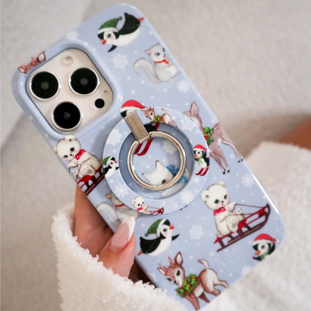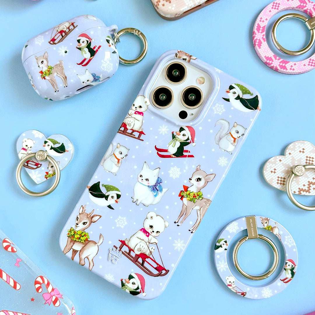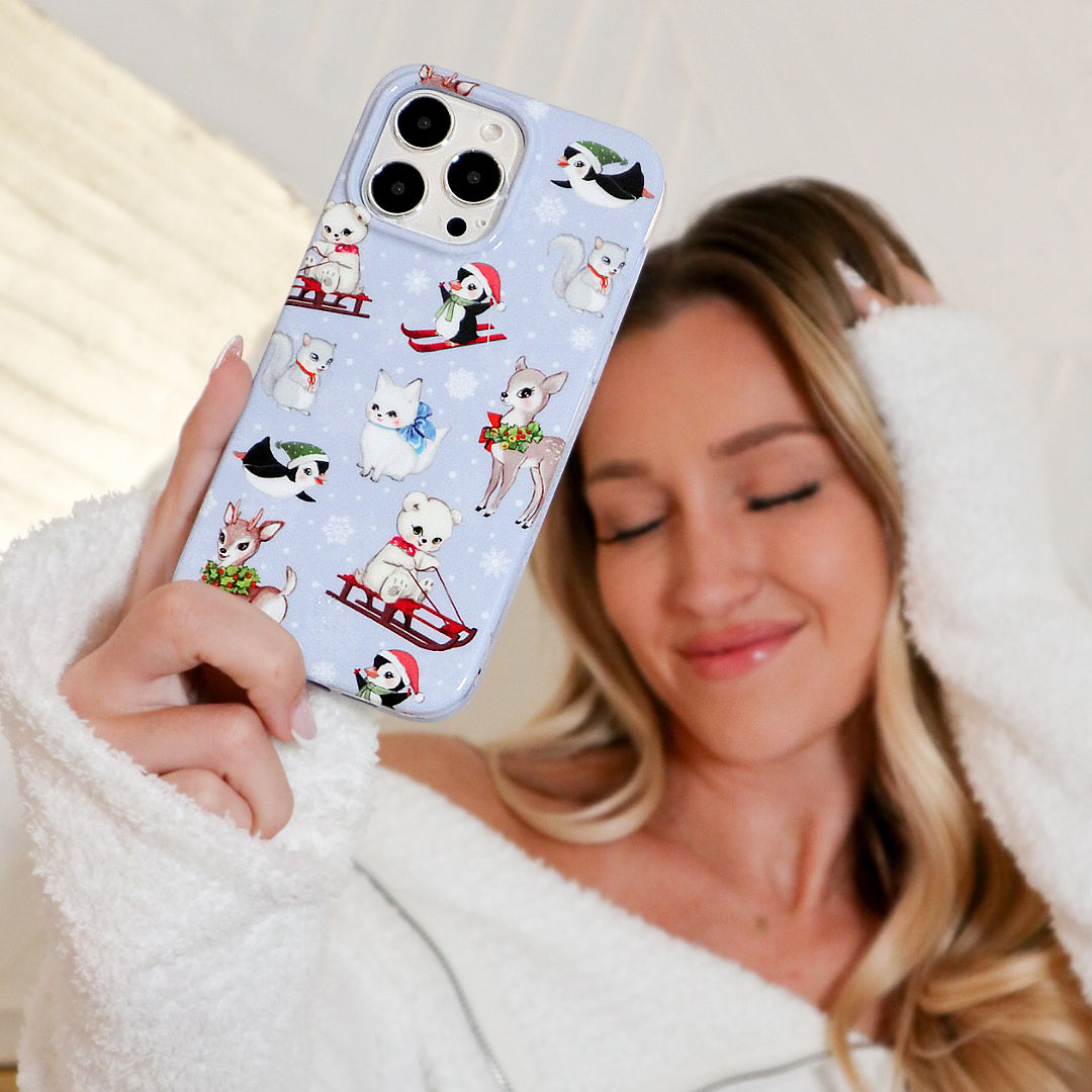 Happy Holidays! This protective glossy case features an icy blue base with an array of adorable retro baby animals with adorned in their holiday best. NOTE: This case is part of our Limited Edition Christmas & Hanukkah Collection, perfect for cozy nights and Holiday parties!