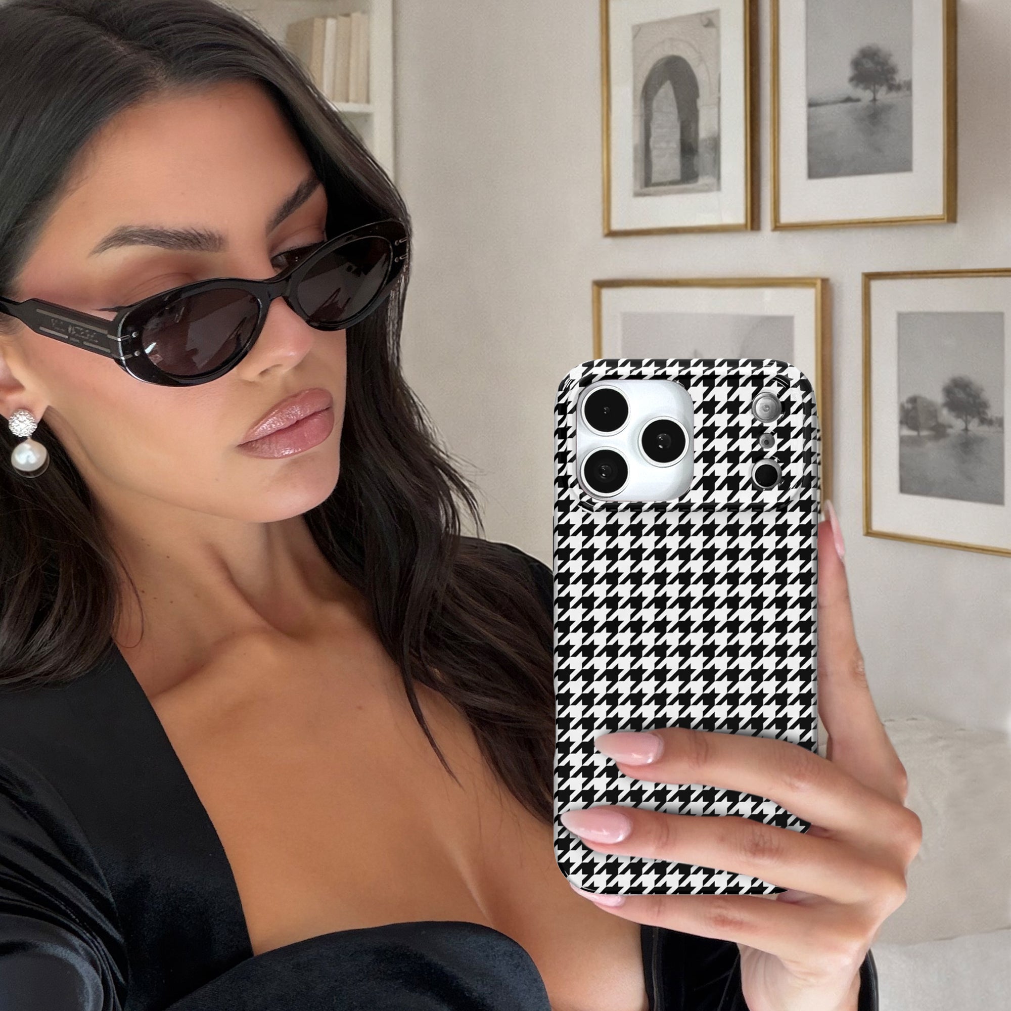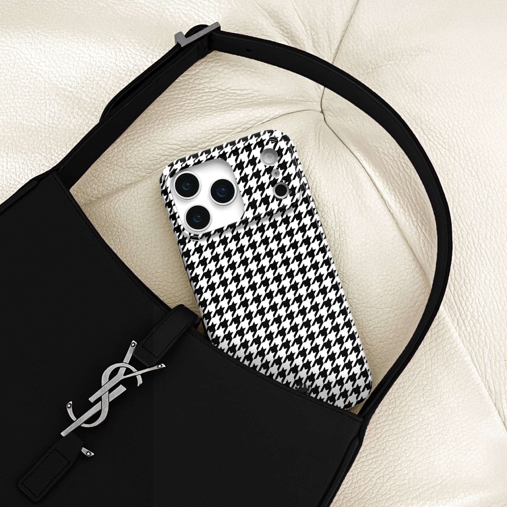 Happy Holidays! This MagSafe case features a glossy black and white houndstooth print. This case is part of our Limited Edition Holiday Dreams collection celebrating Christmas and Hanukkah.