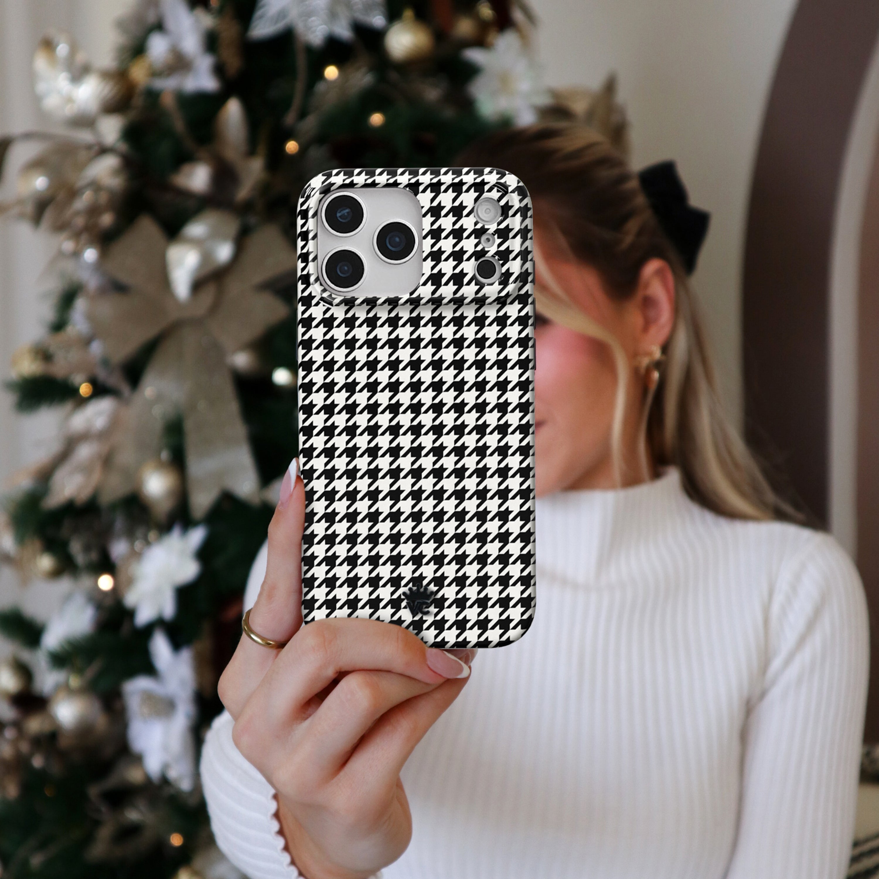 Happy Holidays! This MagSafe case features a glossy black and white houndstooth print. This case is part of our Limited Edition Holiday Dreams collection celebrating Christmas and Hanukkah.