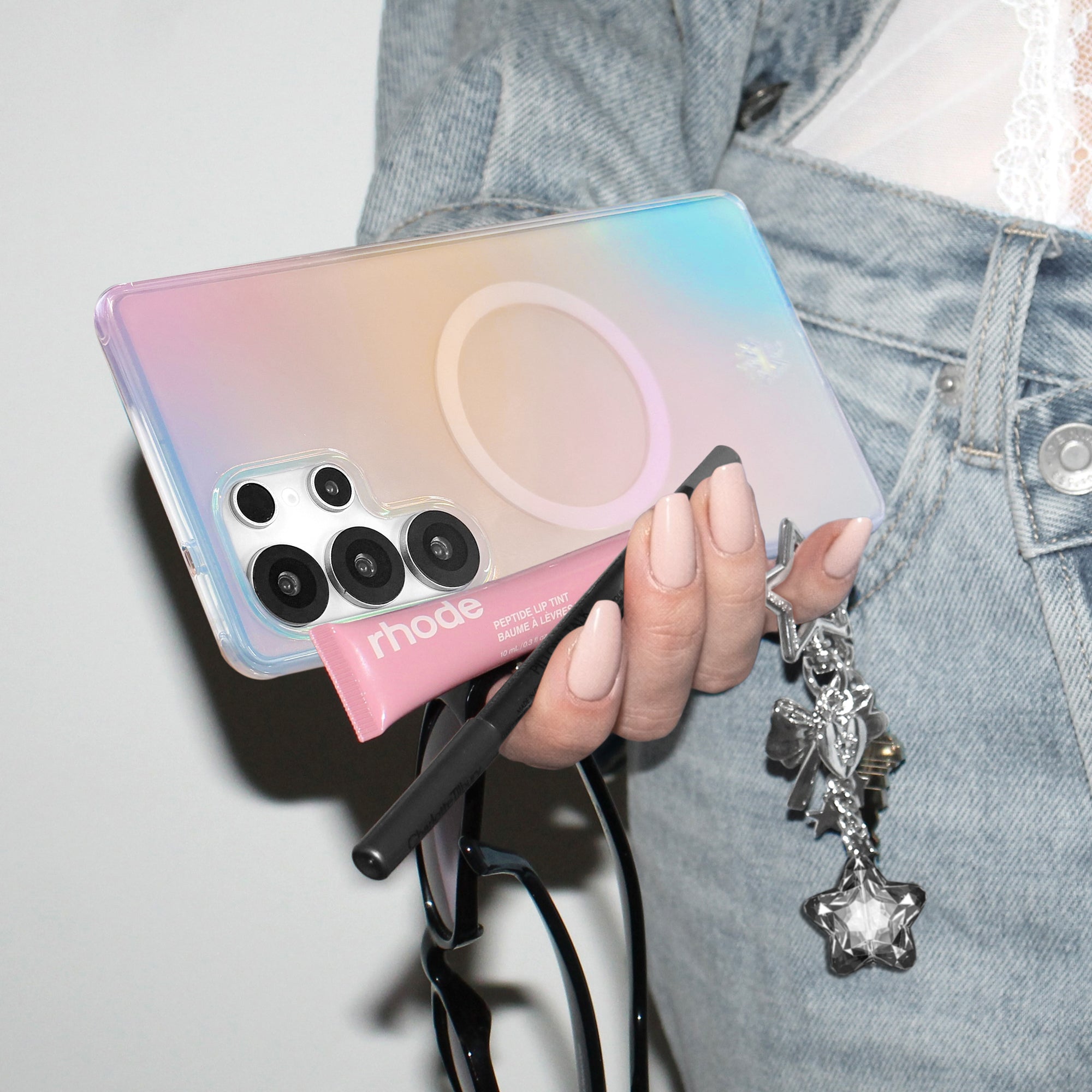 Your aura is unforgettable! This Limited Edition Case features a glossy transparent base in soft focus pastel sunset tones.