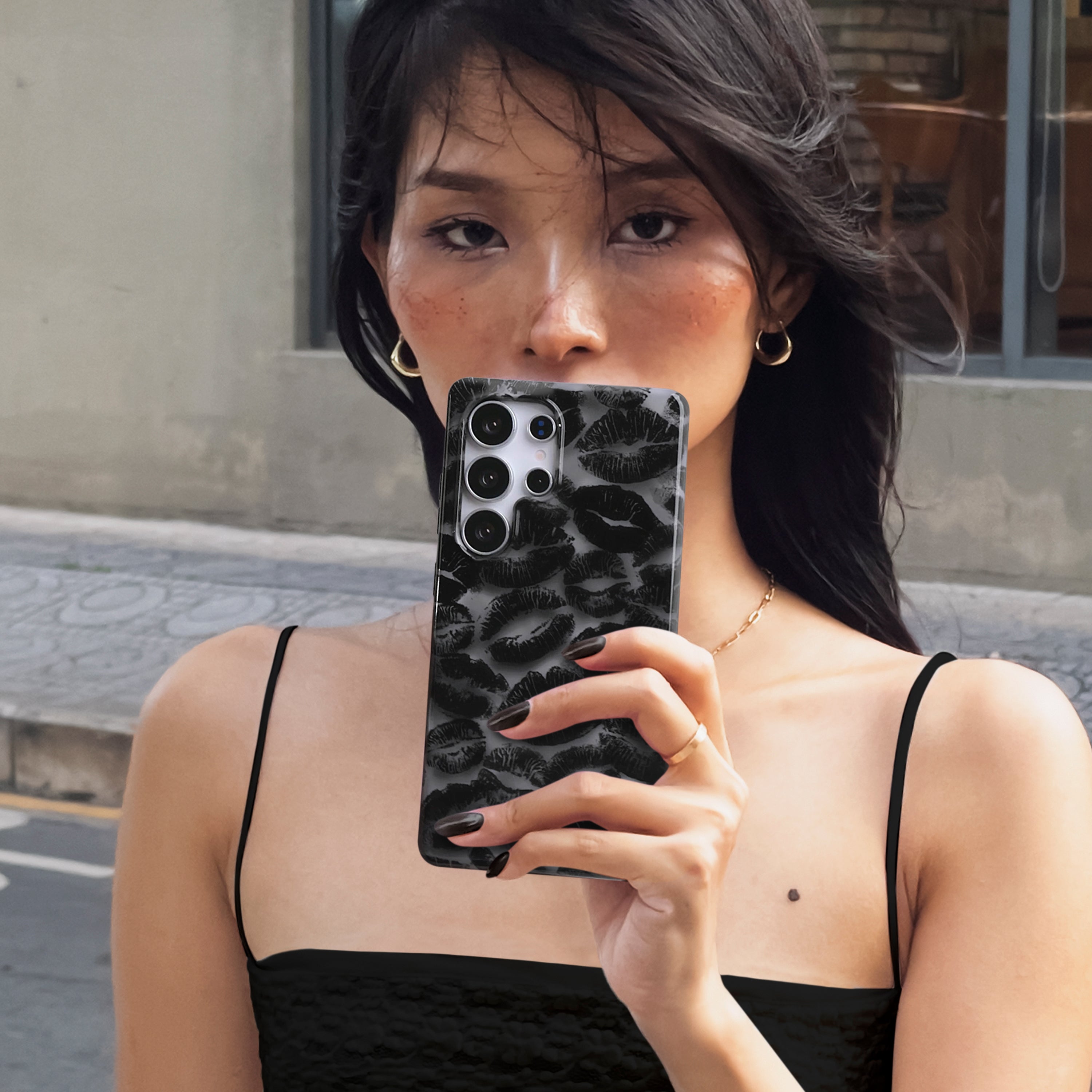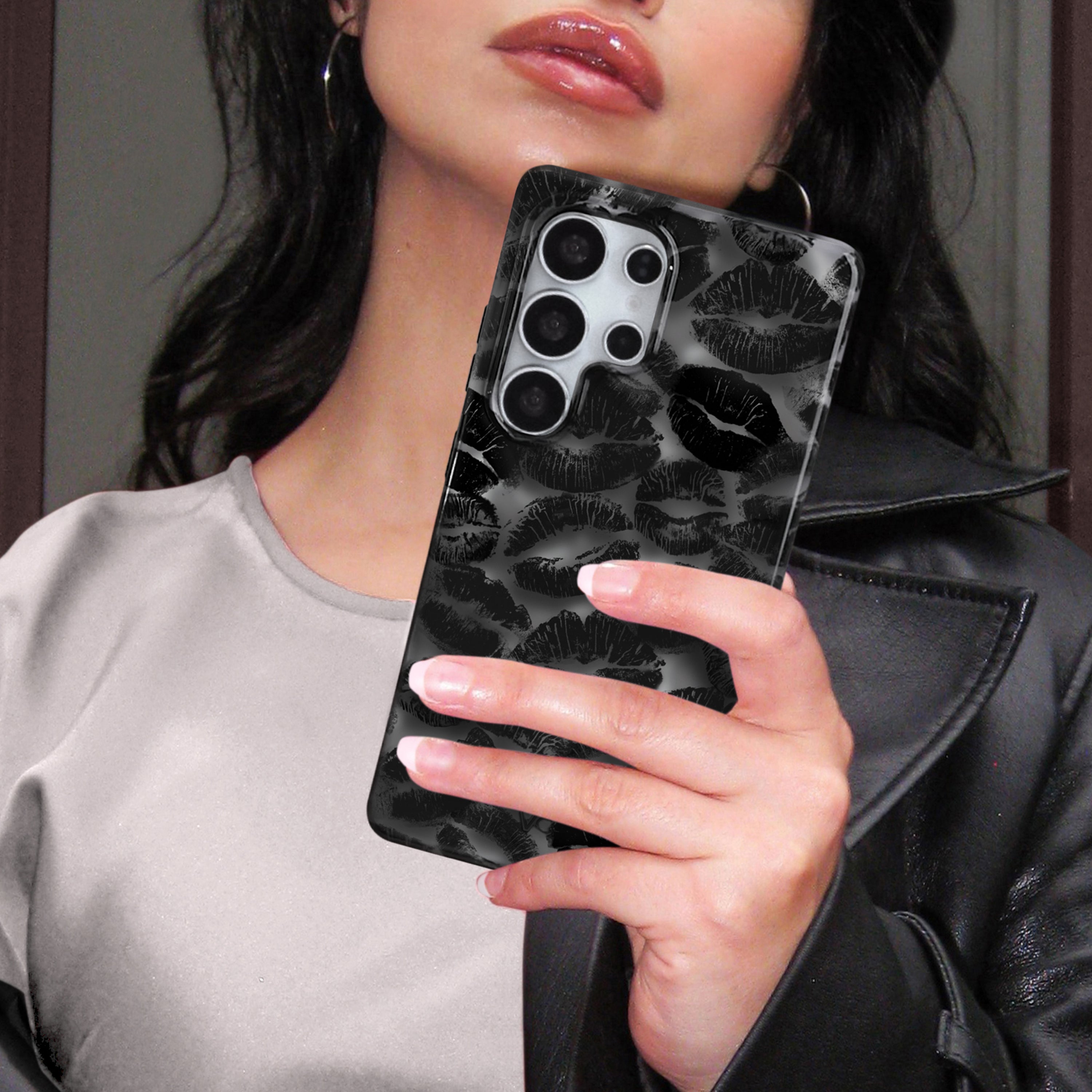 Happy Halloween! This chic protective case features black lipstick kisses throughout.