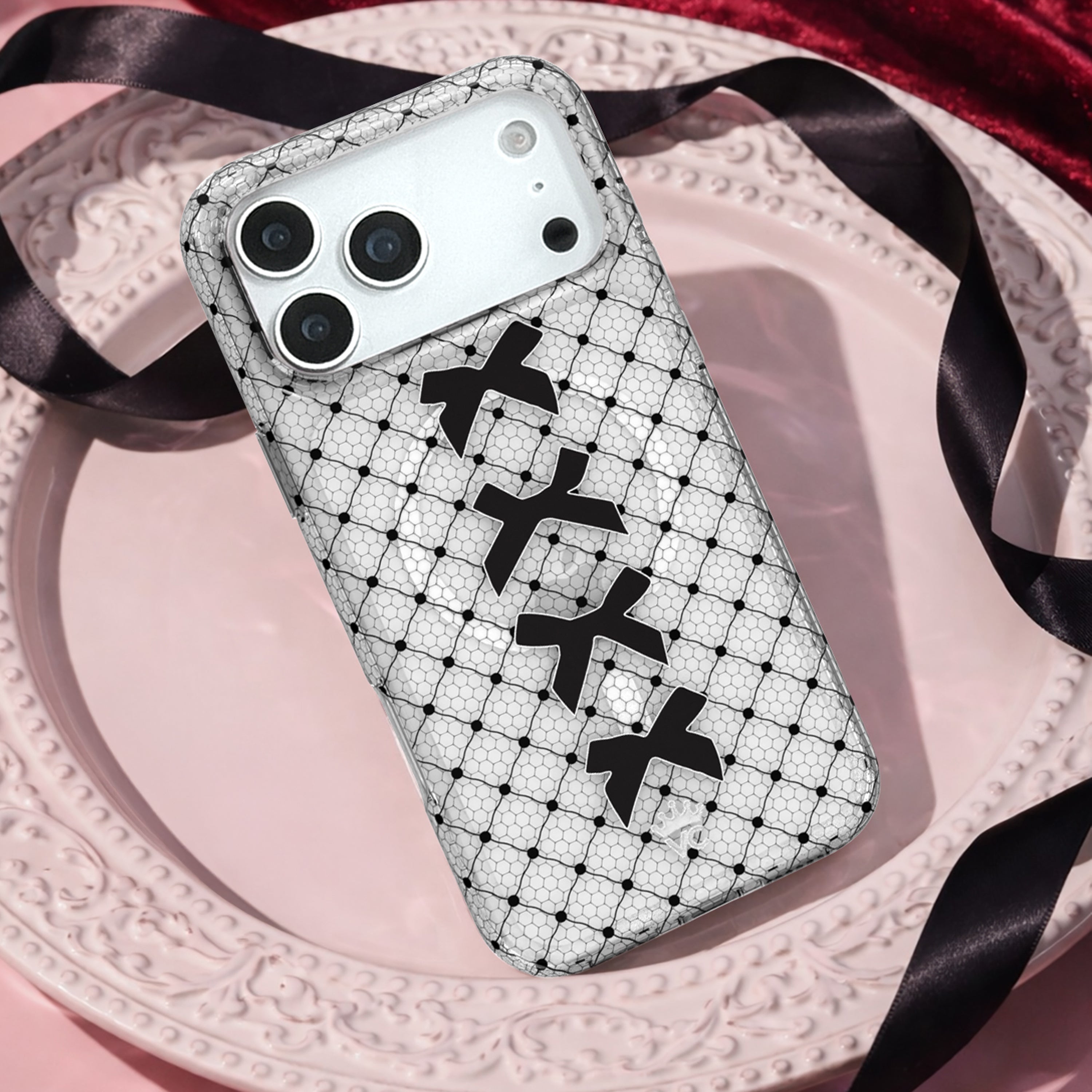 Lace Me Up! This Limited Edition MagSafe case features a clear base with glossy black lace and bow details.