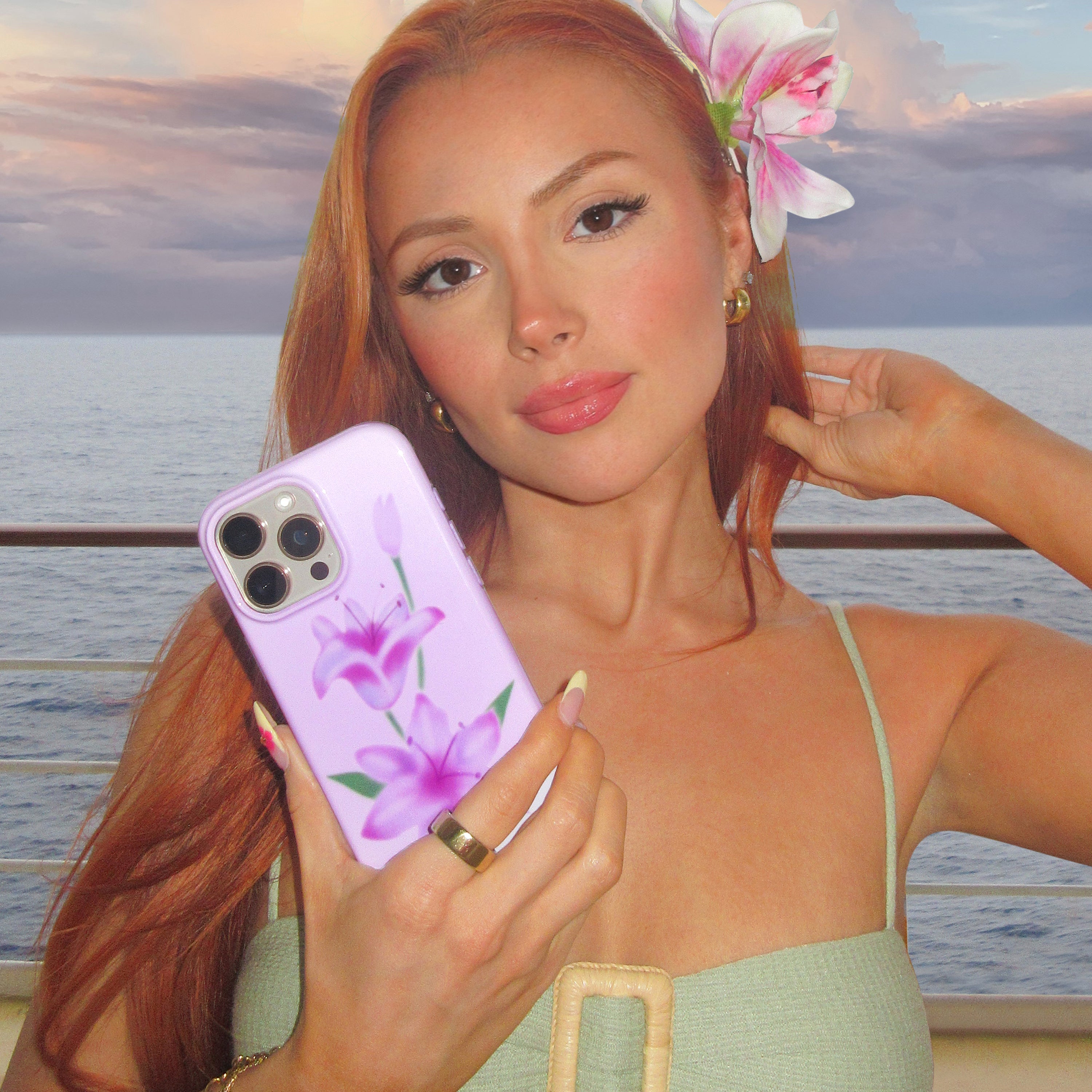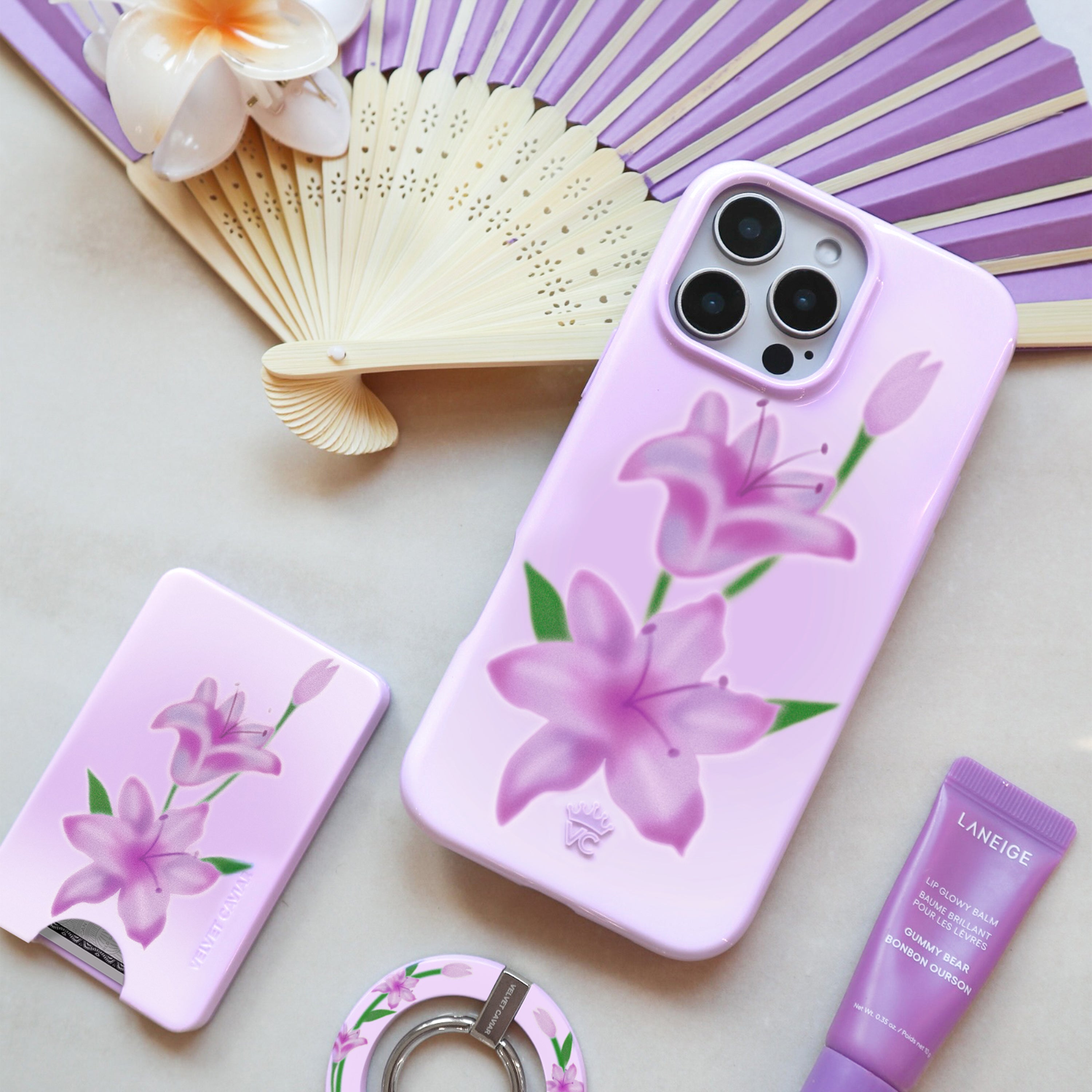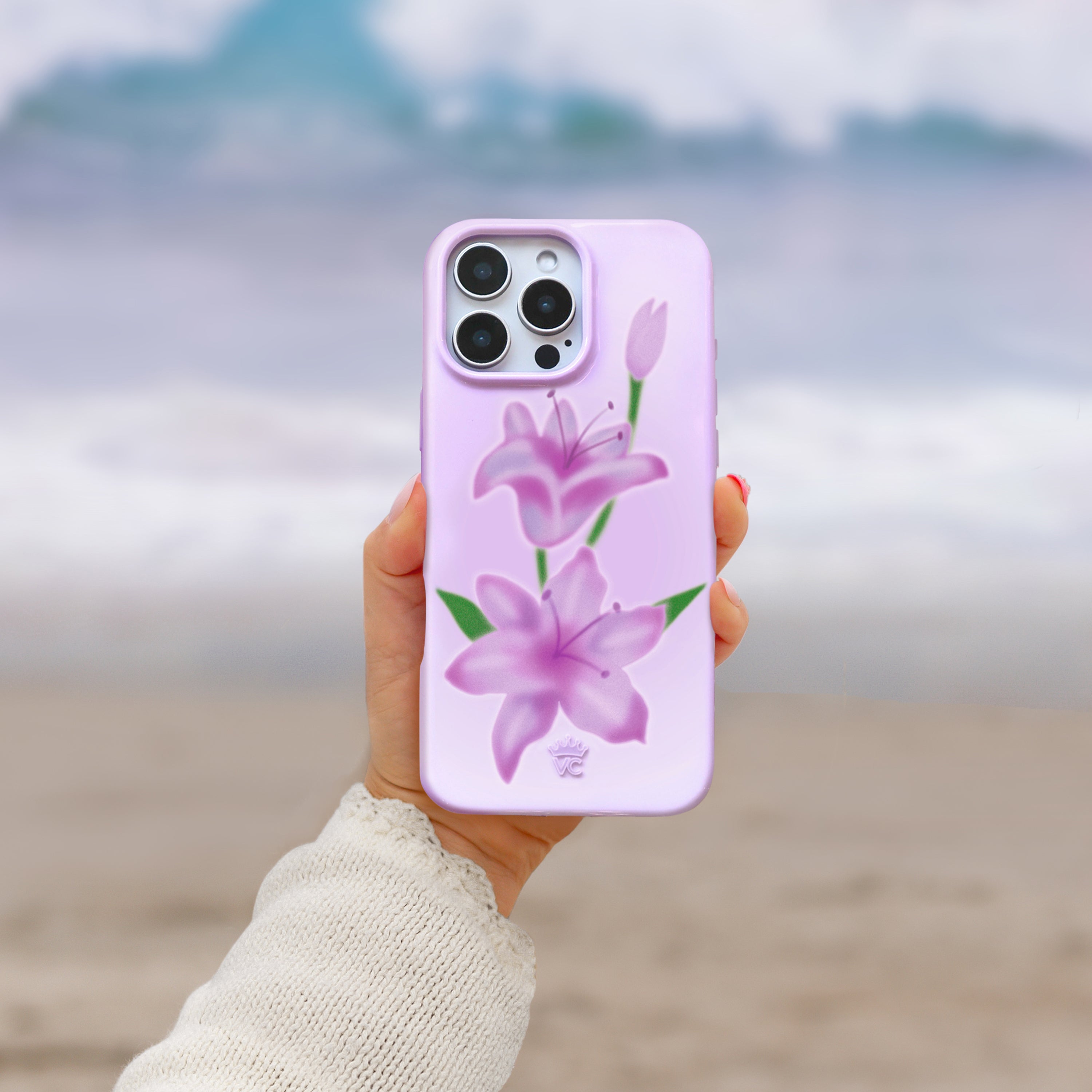 Under your spell! This MagSafe case features a soft focus blooming lily floral on a pastel lilac base.