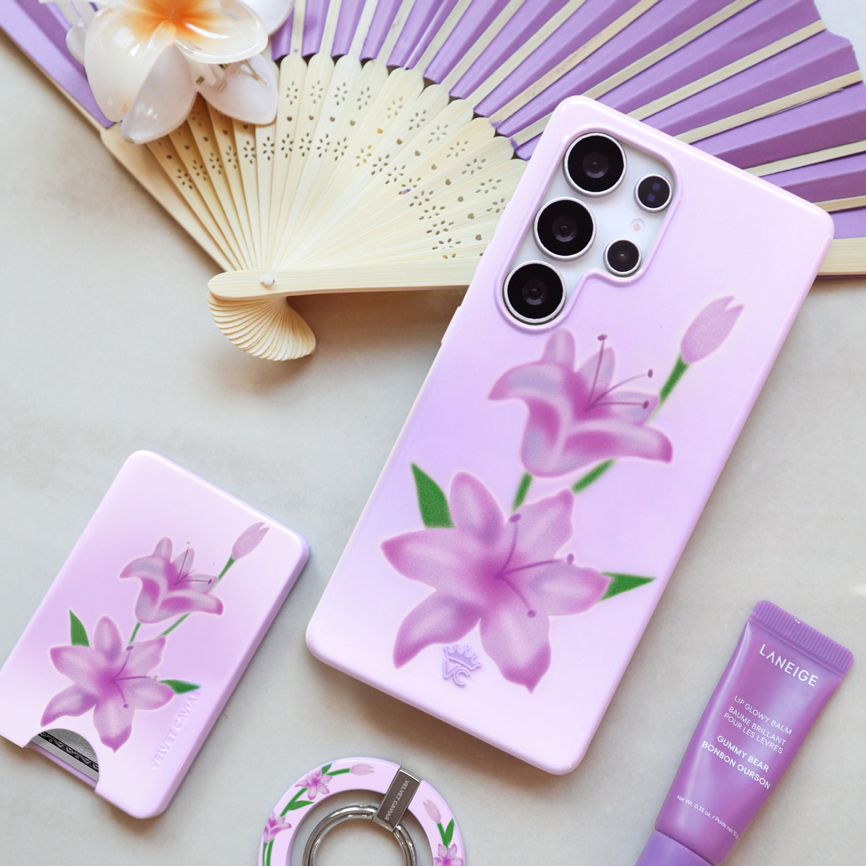 Under your spell! This protective case features a soft focus blooming lily floral on a pastel lilac base.