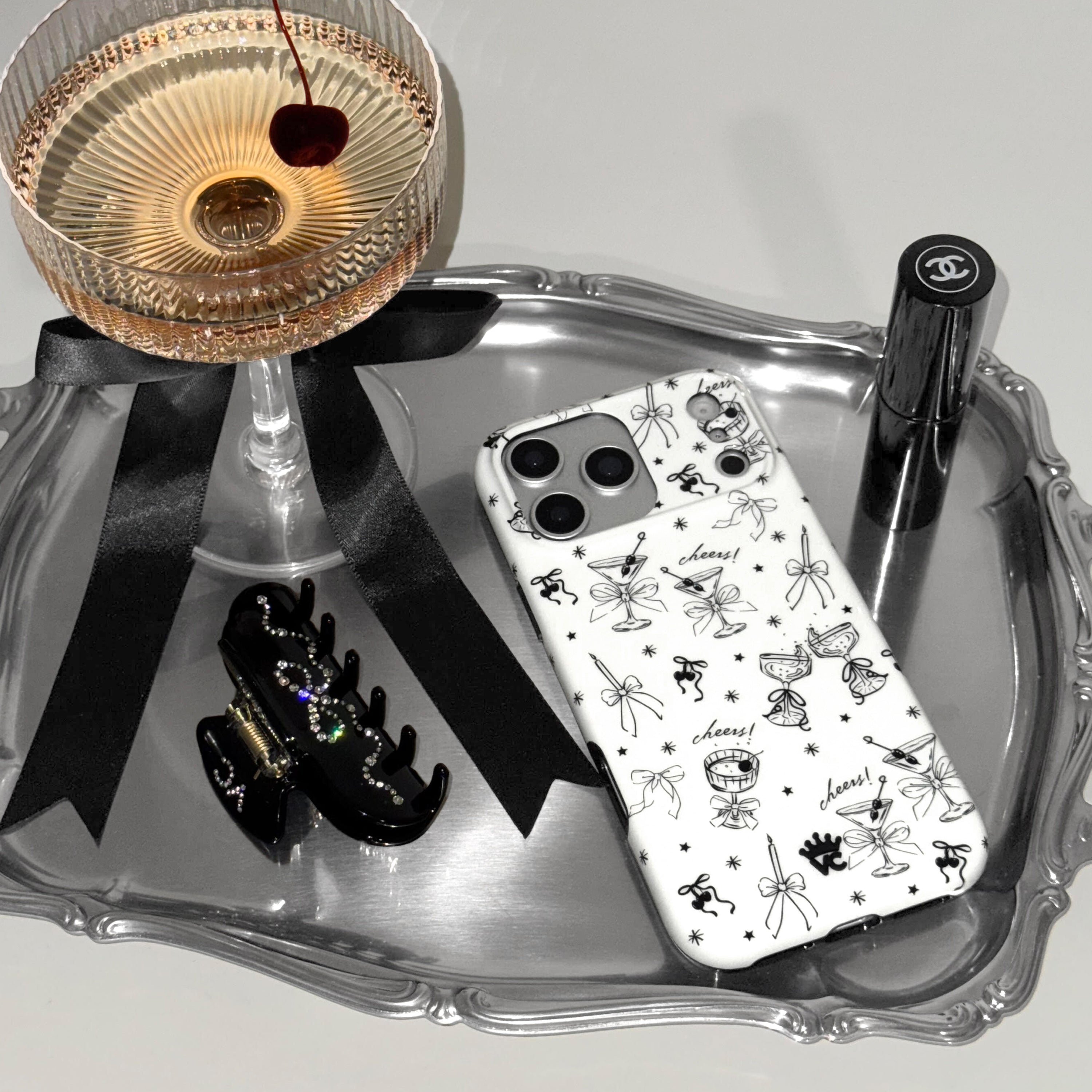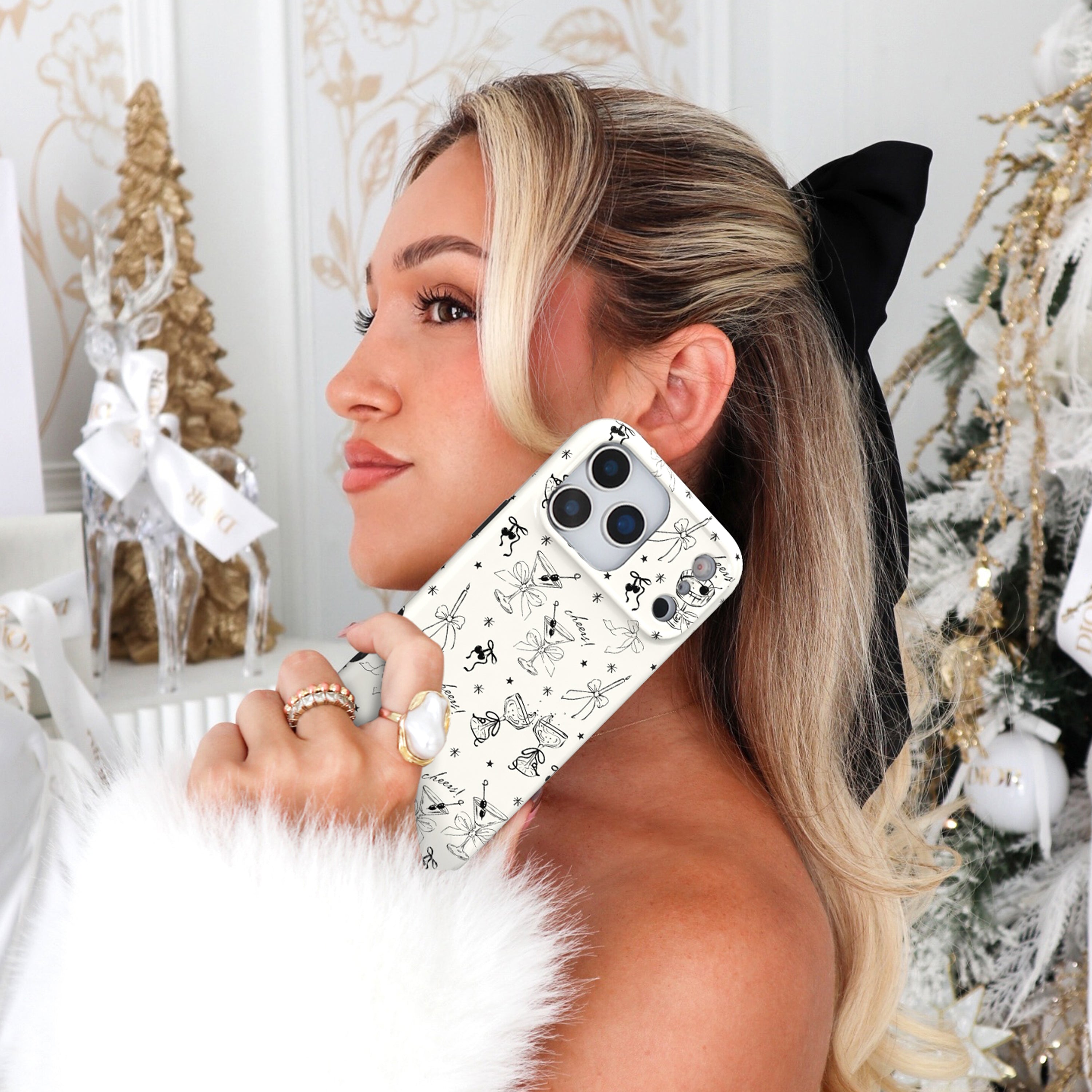 Happy Holidays! This MagSafe case features black hand drawn martini glasses, bows and candles on an off white base. This case is part of our Limited Edition Holiday Dreams collection celebrating Christmas and Hanukkah.