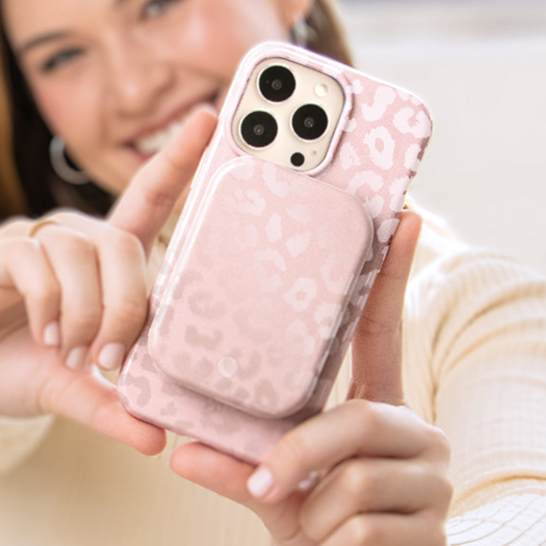 Take a walk on the wild side! This protective case features a matte nude base with glossy leopard spots.