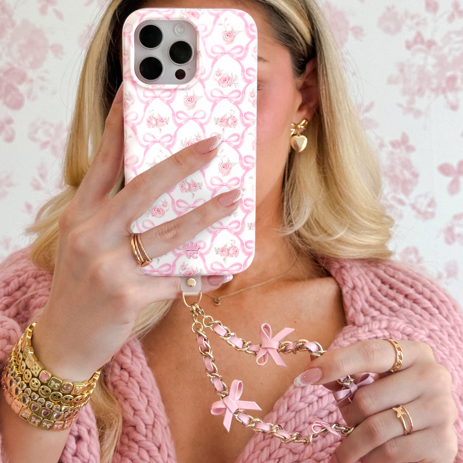 Pink Bow Leather Chain Phone Charm