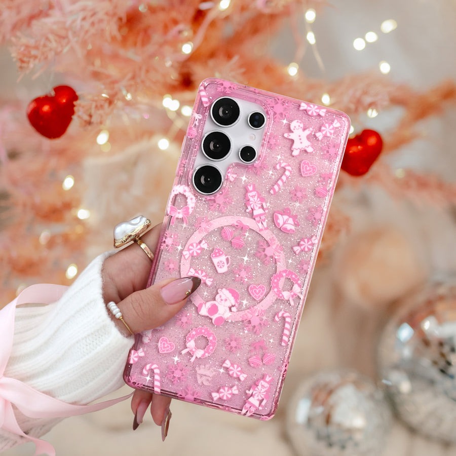 Pink Christmas Glitter Samsung Case