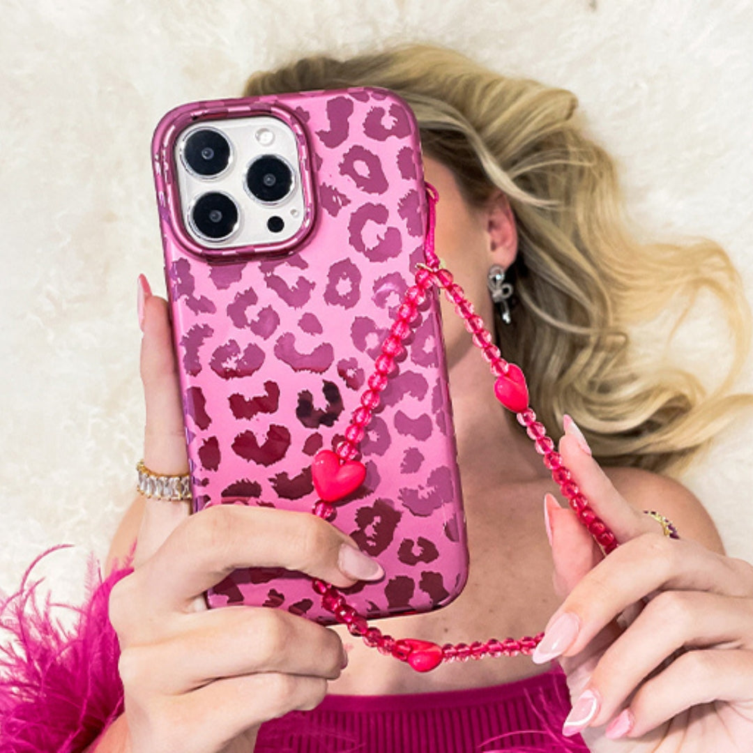 One word. FIERCE! This protective case features metallic ruby leopard spots on a monochromatic satin base.