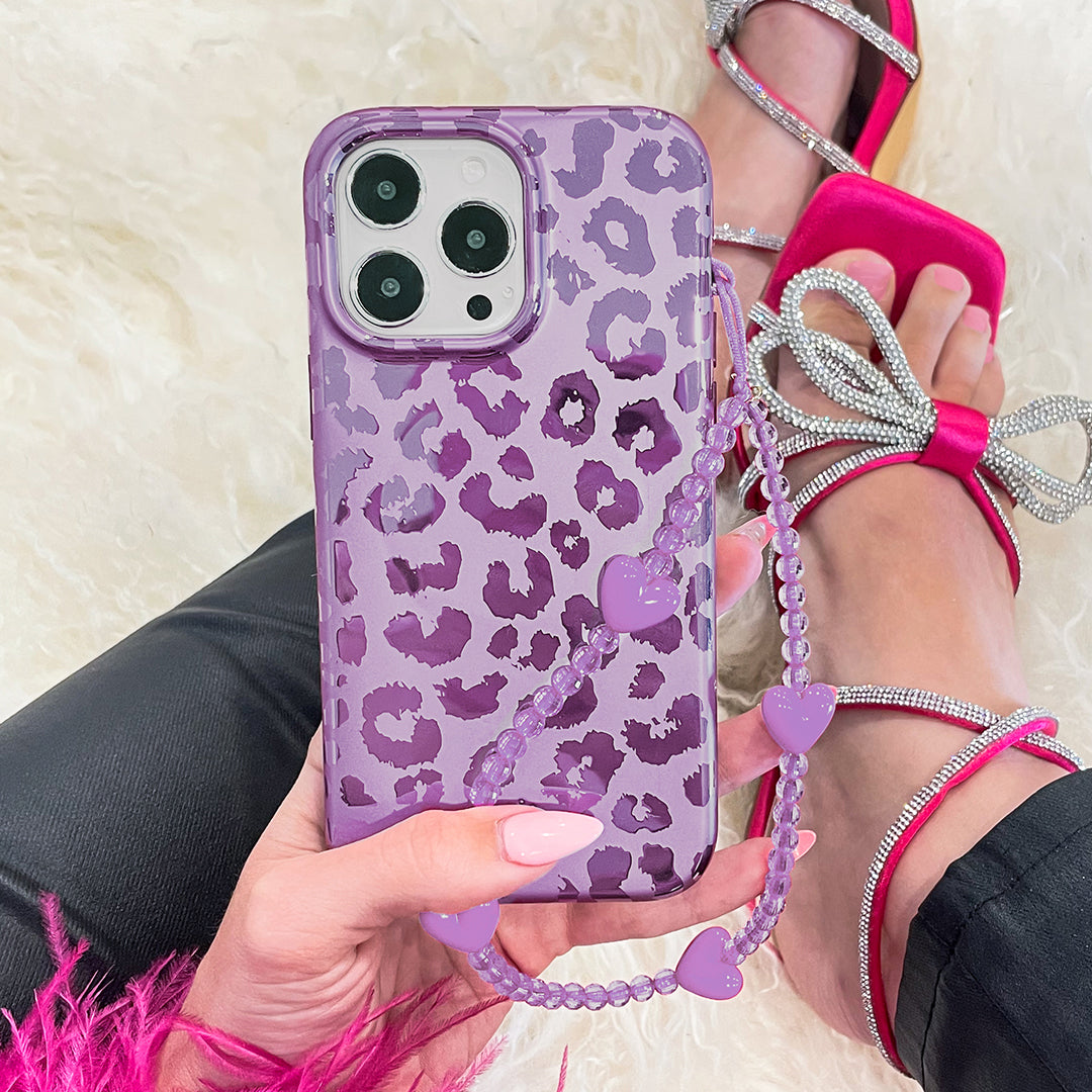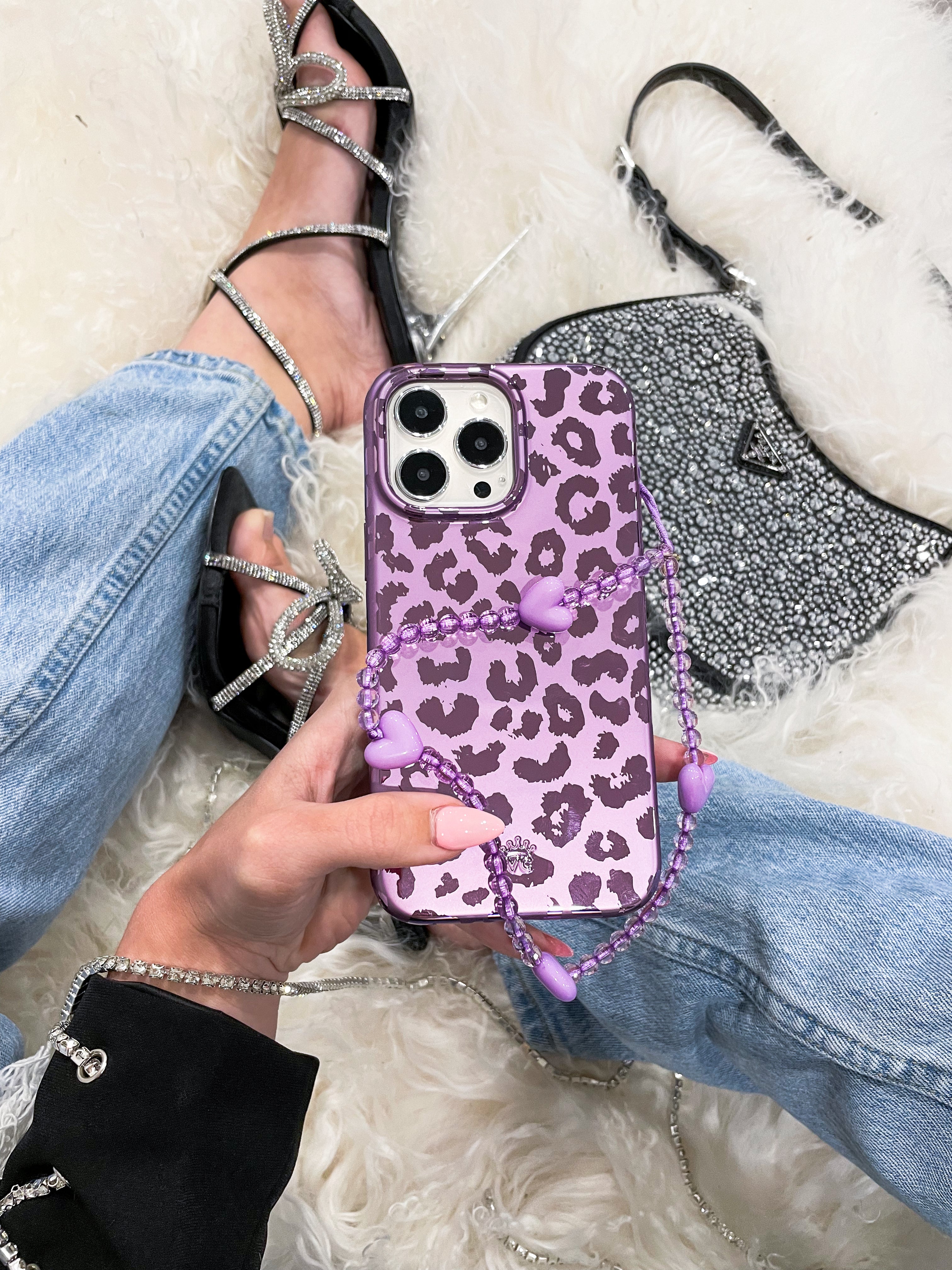 One word. FIERCE! This protective case features metallic amethyst leopard spots on a monochromatic satin base.