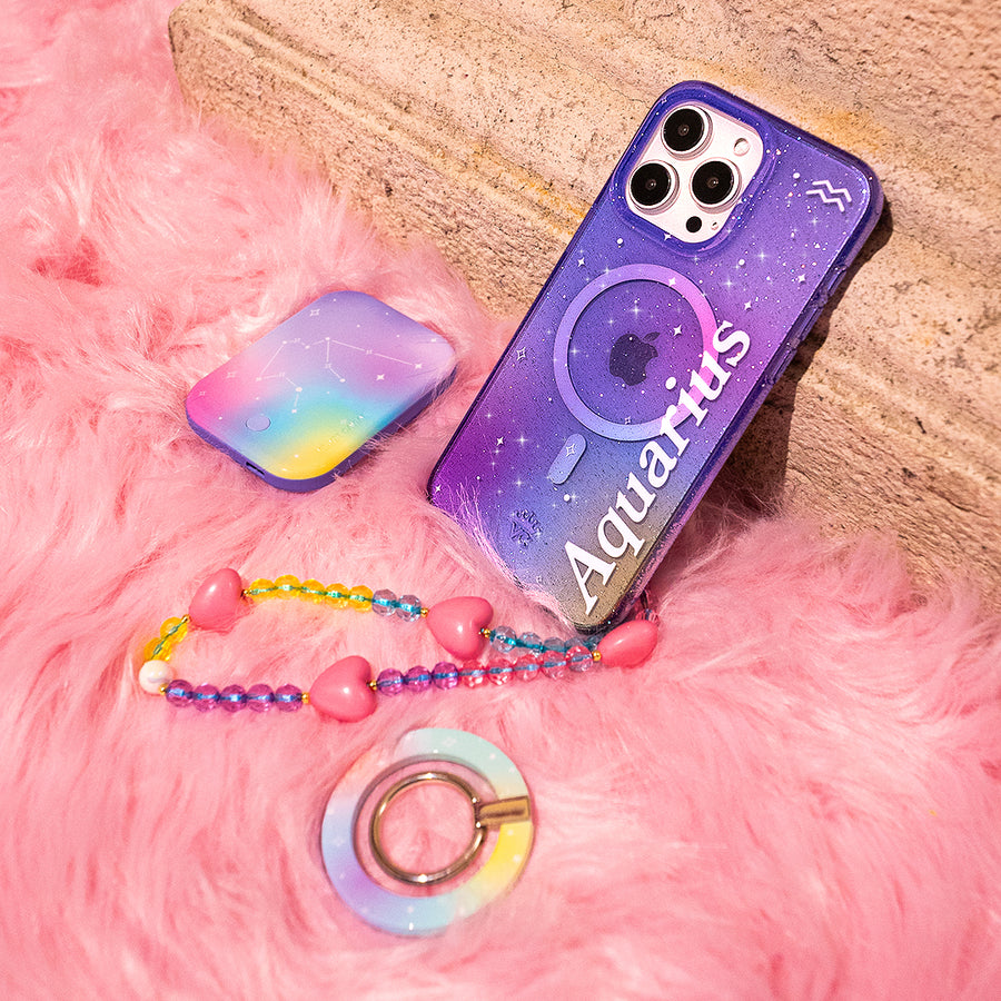 Aquarius are Creative, Thoughtful, and Friendly! This MagSafe case comes in a gorgeous purple colorway inspired by the unique elements of Aquarius with silver glitter sprinkled into the base and bumper. This case is part of our Zodiac Collection in collaboration with Sanctuary™