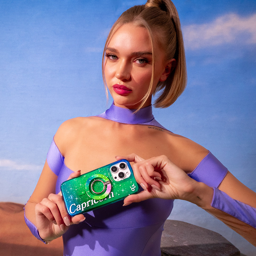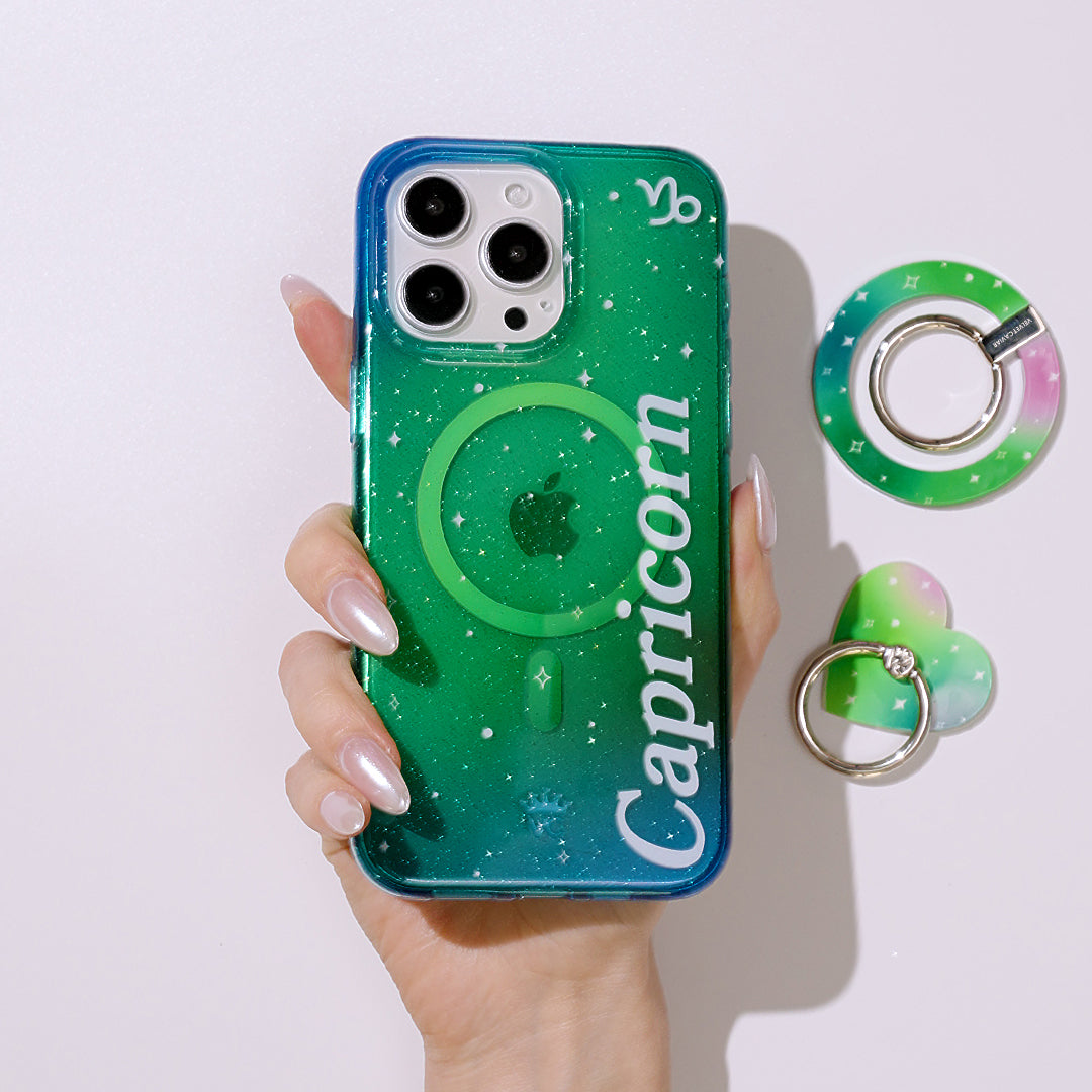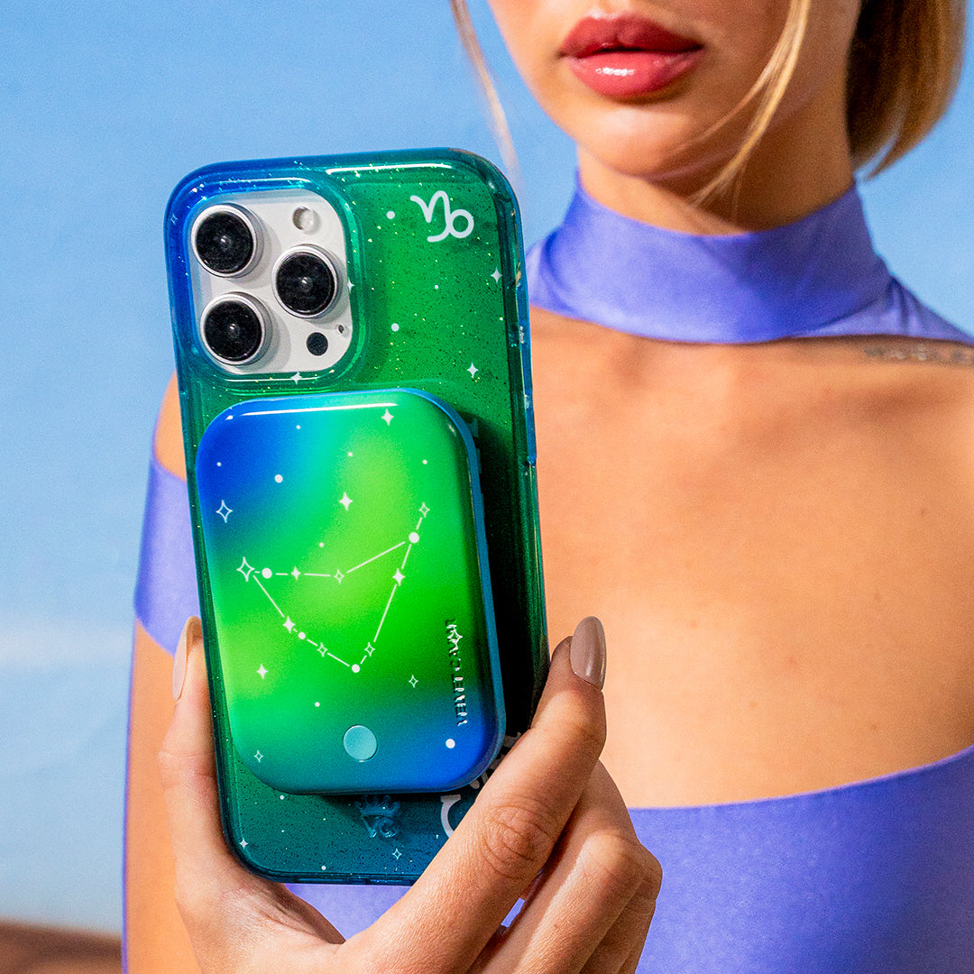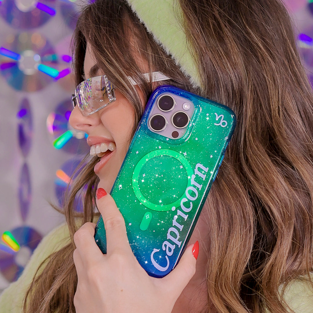Capricorn's are Independent, Ambitious, and Determined! This MagSafe case comes in a gorgeous green and blue colorway inspired by the unique elements of Capricorn with silver glitter sprinkled into the base and bumper. This case is part of our Zodiac Collection in collaboration with Sanctuary™