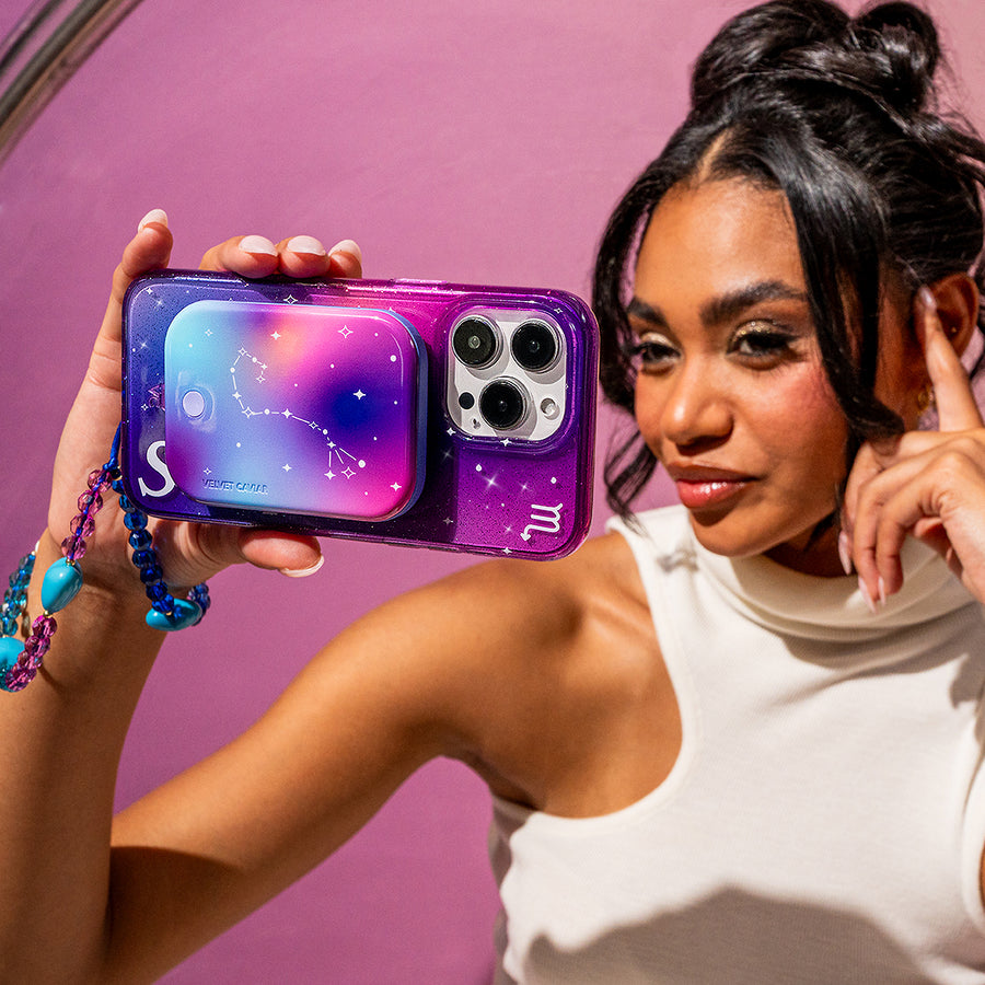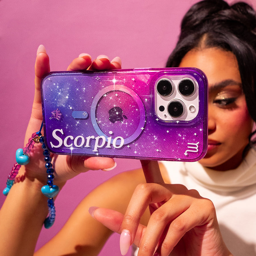 Scorpio's are Creative, Clever, and Passionate! This MagSafe case comes in a gorgeous purple colorway inspired by the unique elements of Scorpio with silver glitter sprinkled into the base and bumper. This case is part of our Zodiac Collection in collaboration with Sanctuary™