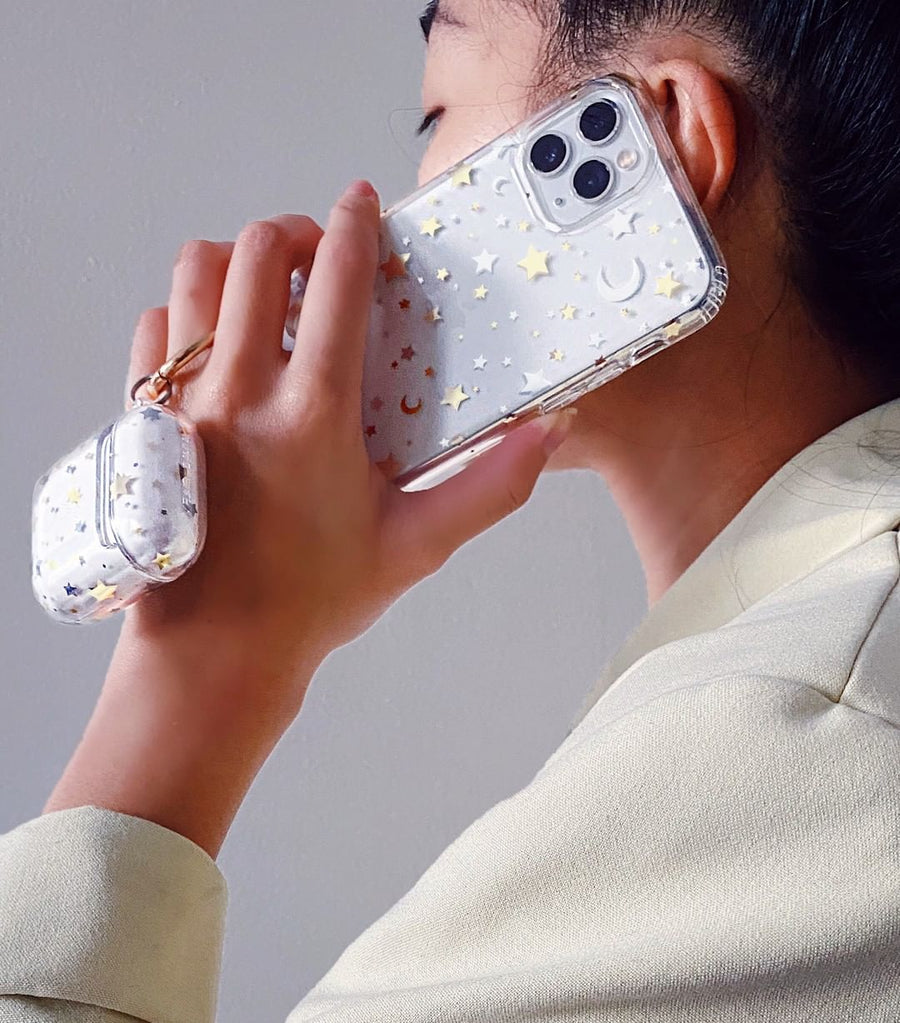 Inspired by our love for the outer galaxy and mysteries of the universe! Featuring a double-layered gold and silver chrome pattern of hand-drawn stars and moons.