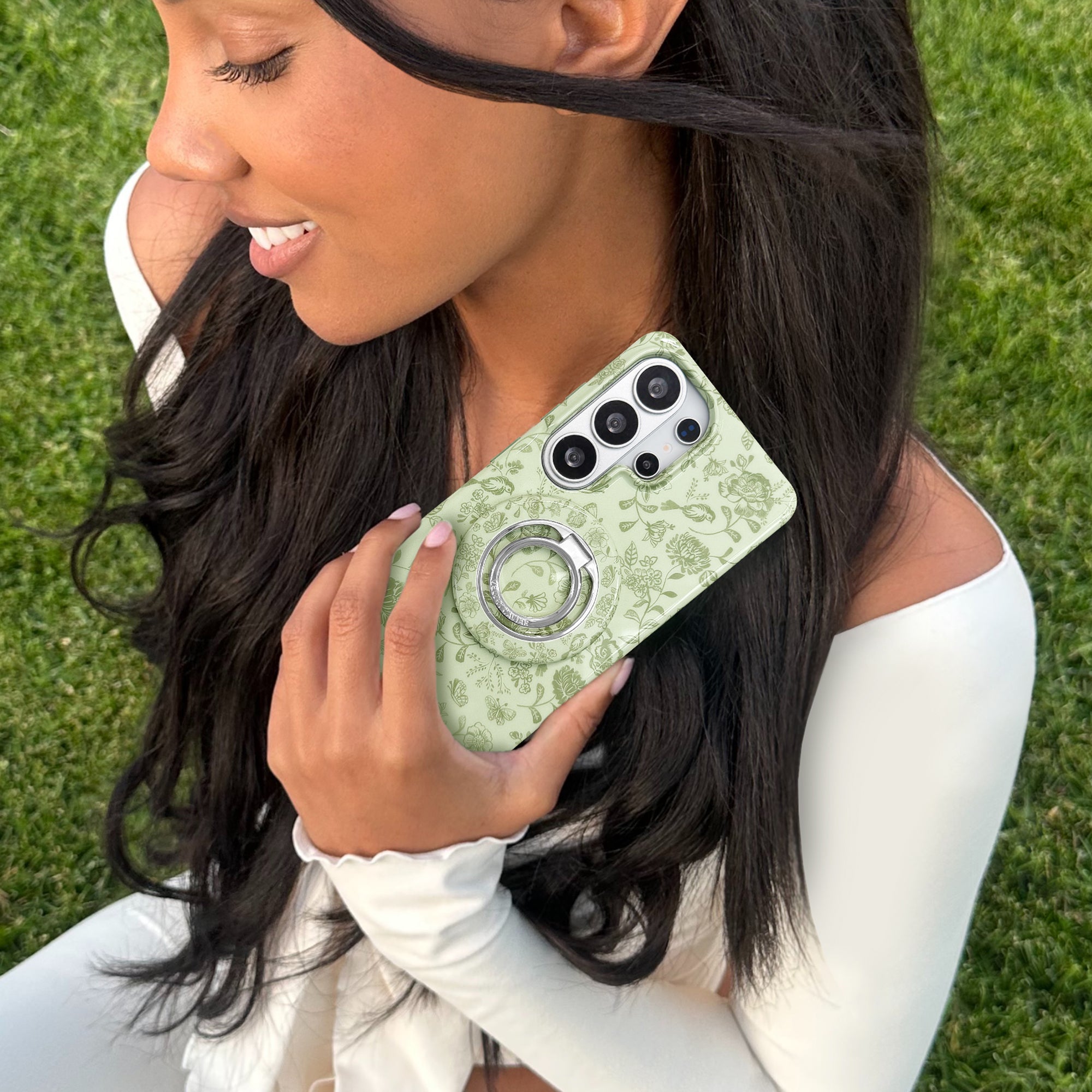 Straight out of a storybook! This glossy phone case features a stunning sage botanical floral on a pale green base.